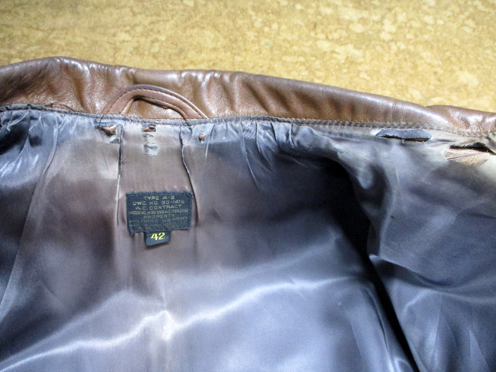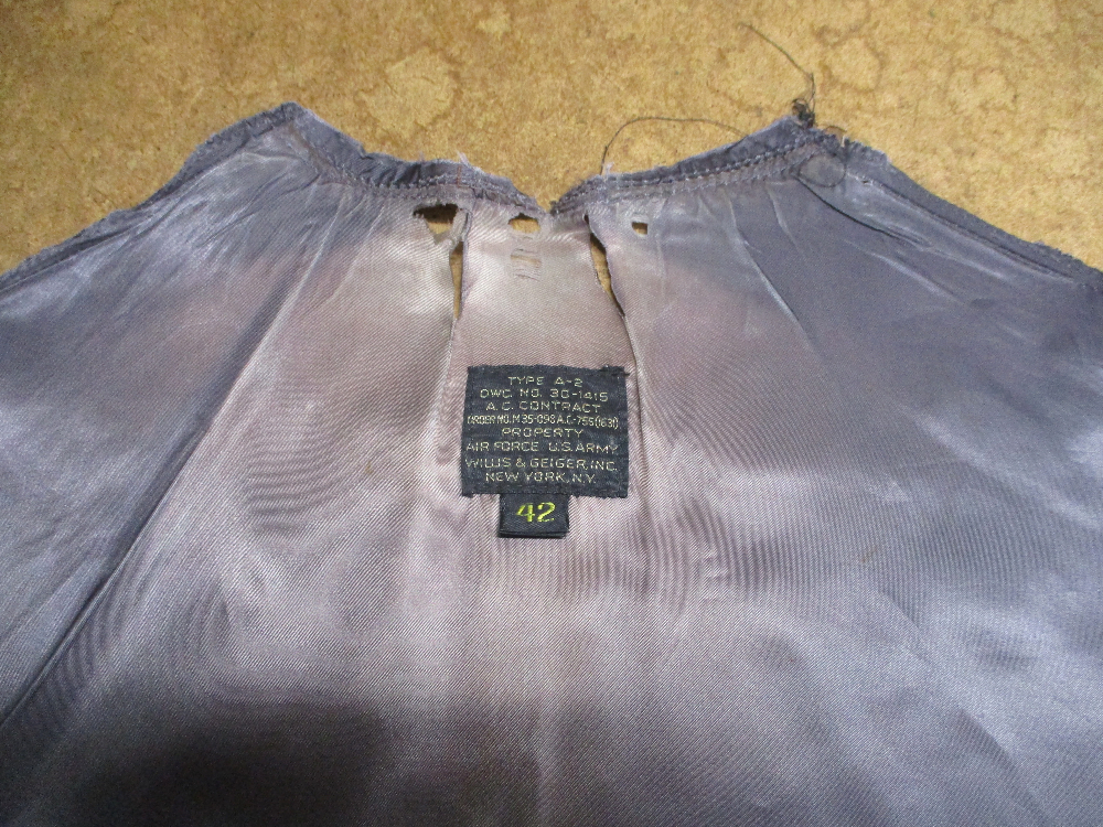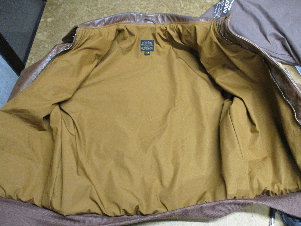 5枚目は裏地の交換が出来ないタイプのA-2フライトジャケットの写真です。