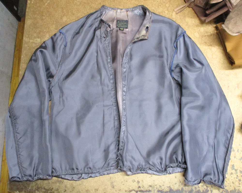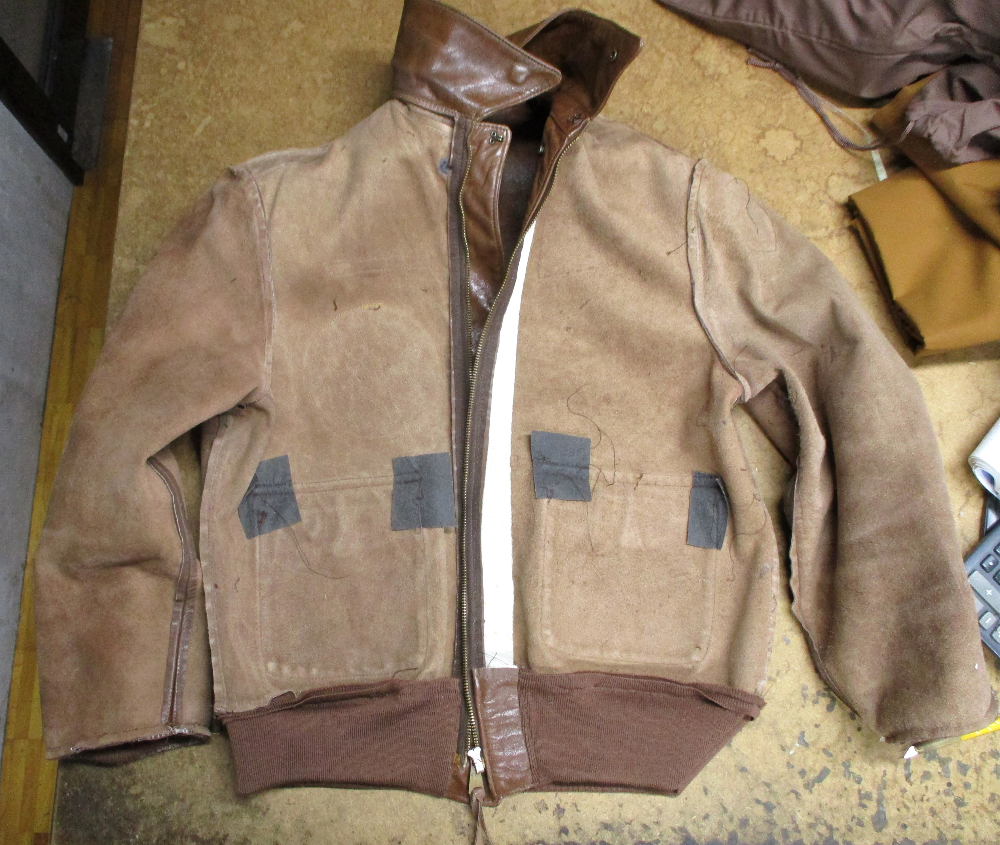 裏地が破れだしたA-2フライトジャケットを新しい生地に交換していきます。