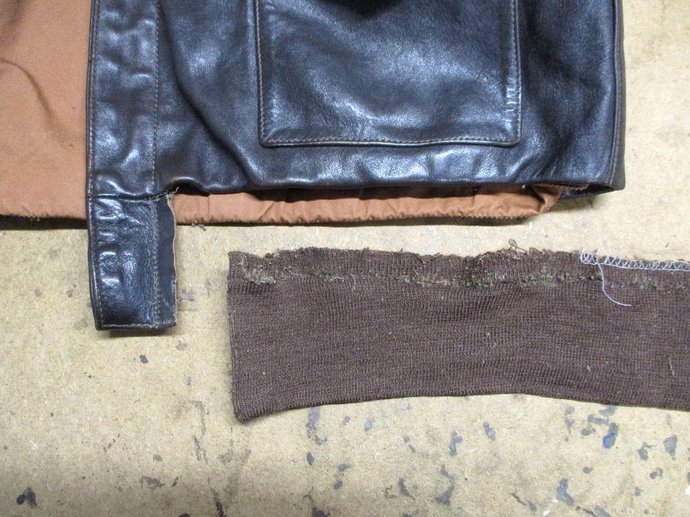 11枚目はA-2フライトジャケットから両袖と腰回りのリブニットを取り外した写真です。