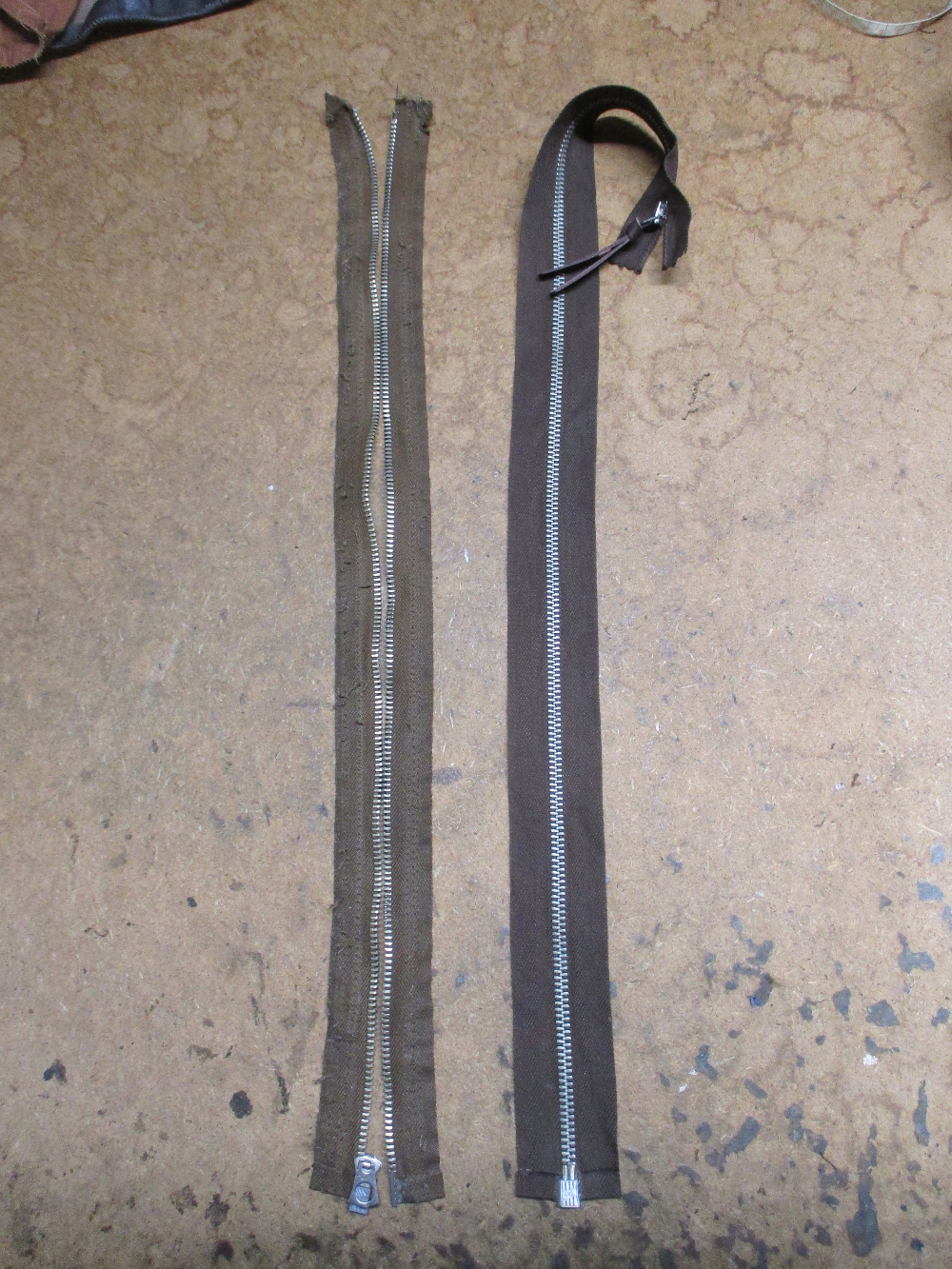 A-2フライトジャケットのリブニットとジッパーを新しいものに交換していきます。