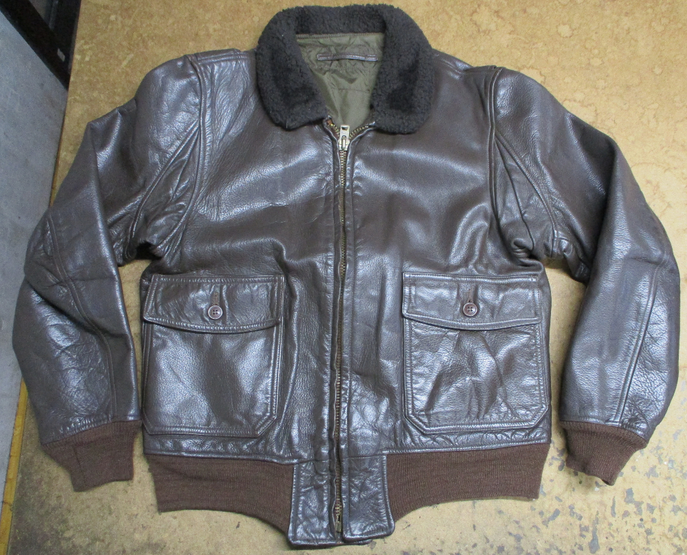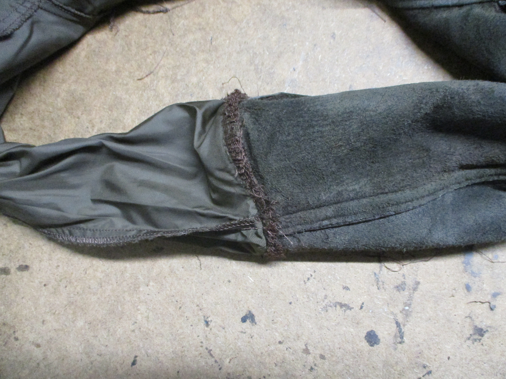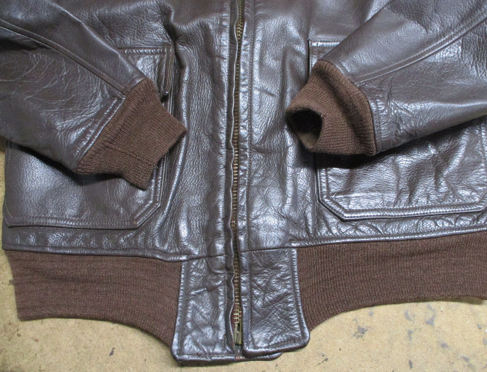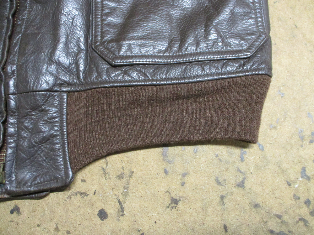 1枚目は福岡県からの郵送のお客さんの両袖と腰回りのリブニットを新しいものに交換していく前のG-1フライトジャケットです。