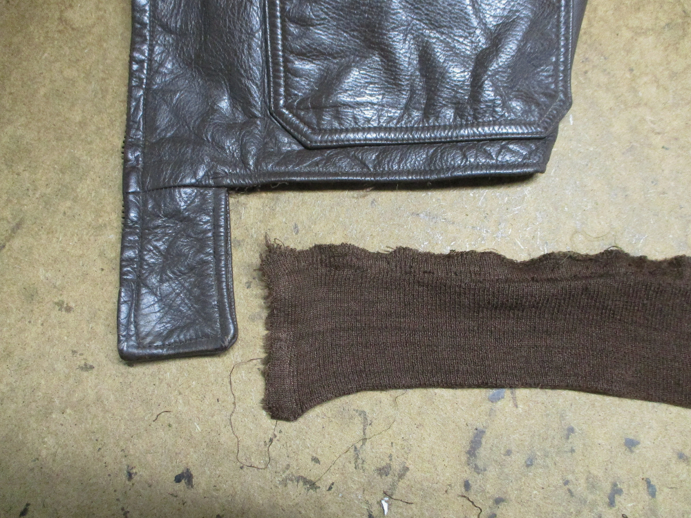 9枚目は両袖と腰回りのリブニットをG-1フライトジャケットから取り外した写真です。