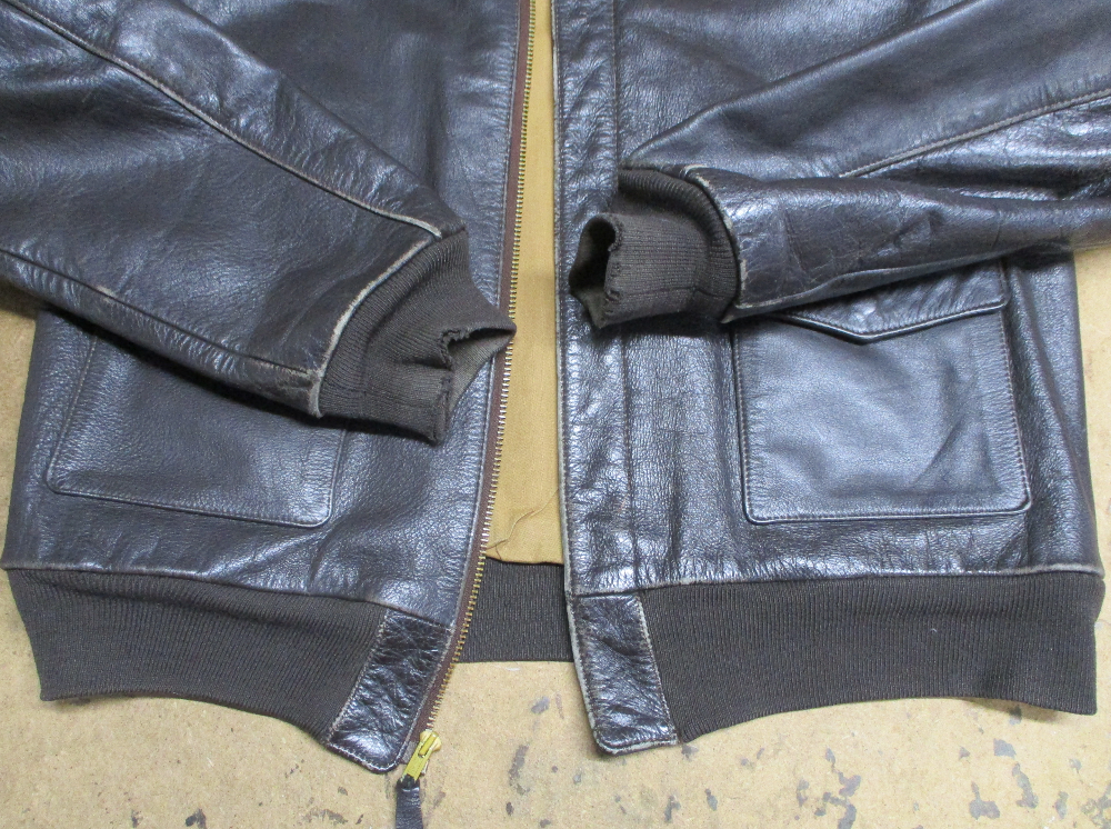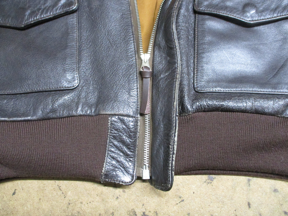 1枚目は愛知県からの郵送のお客さんのリブニットとファスナーと裏地を新しいものに交換していく前のA-2フライトジャケットです。