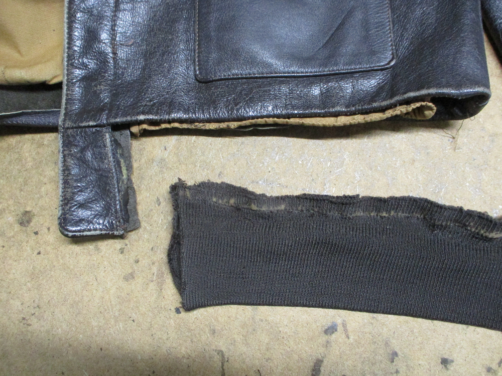 A-2フライトジャケットのリブニット、ファスナー裏地を新しいものに交換していきます。
