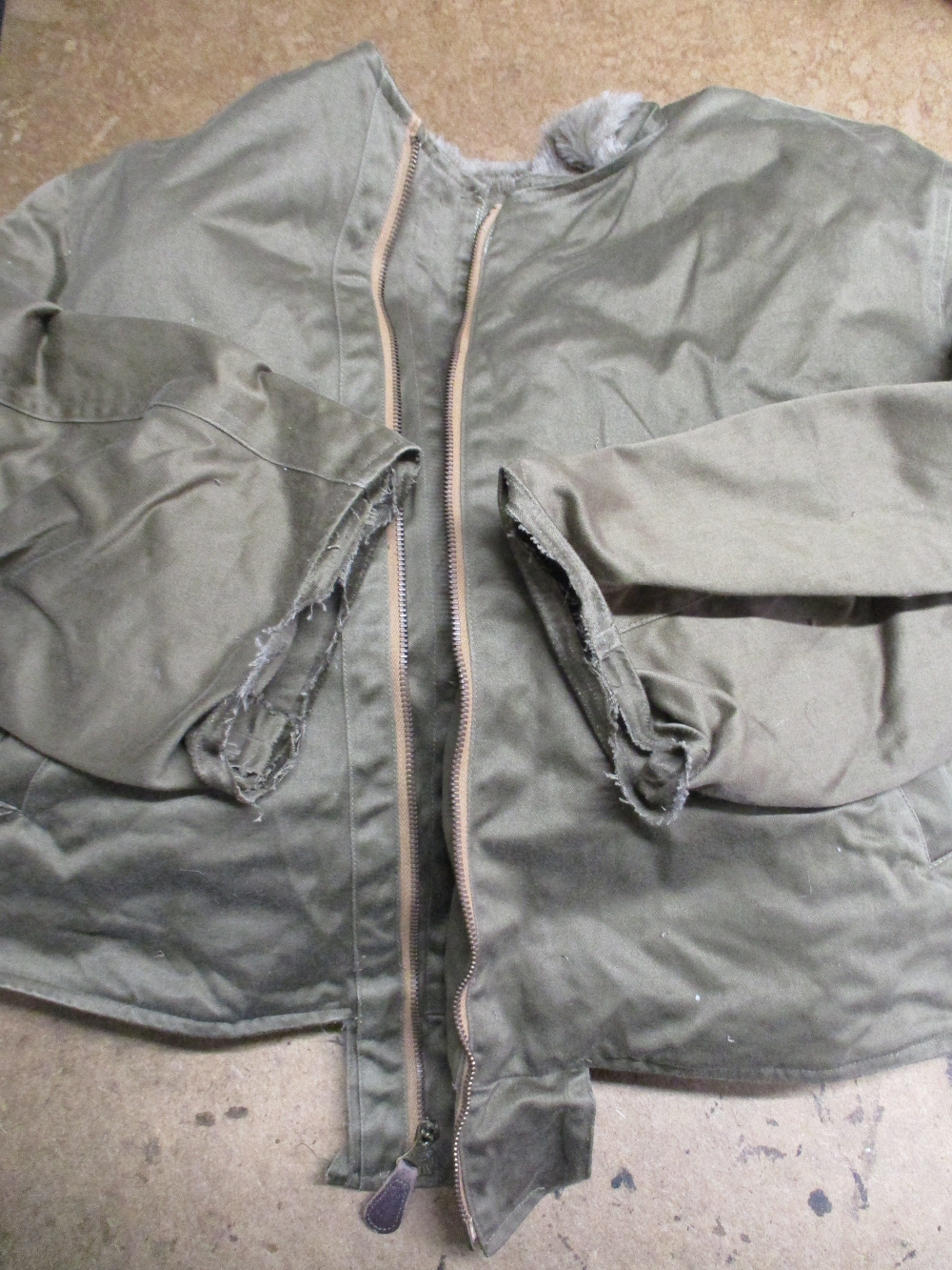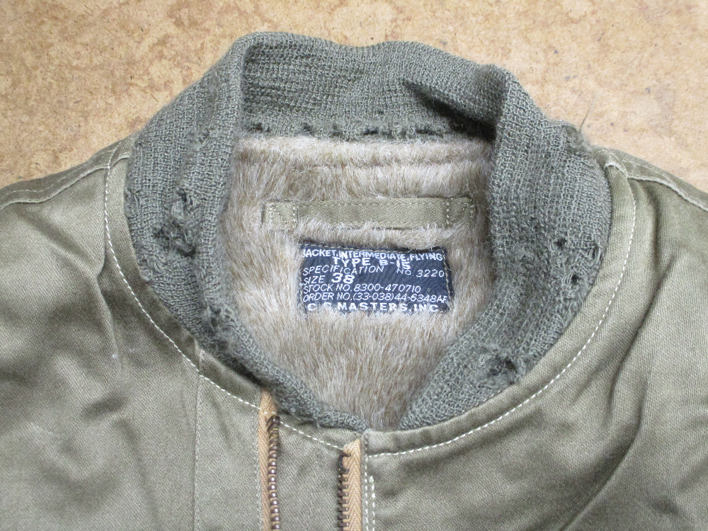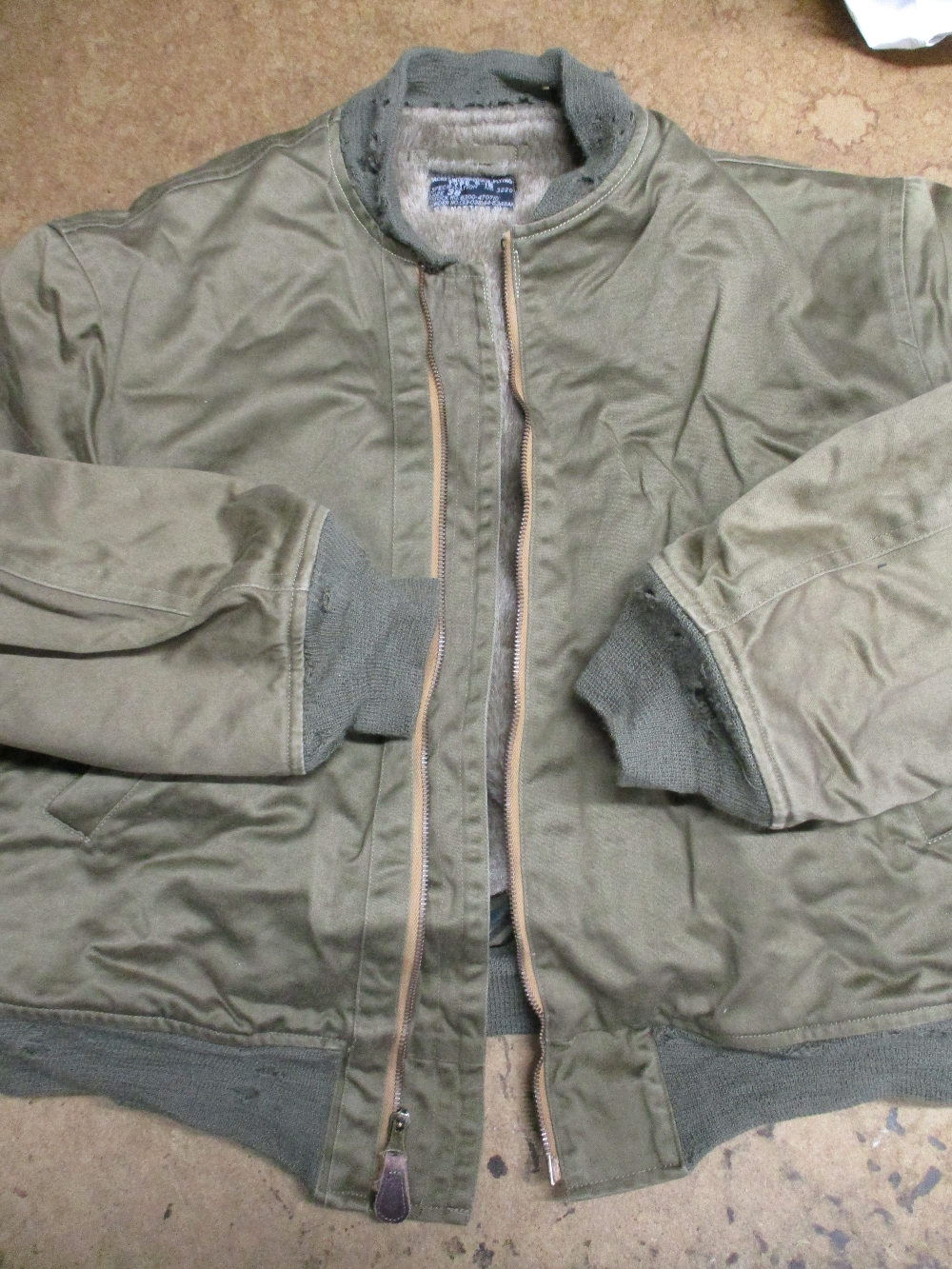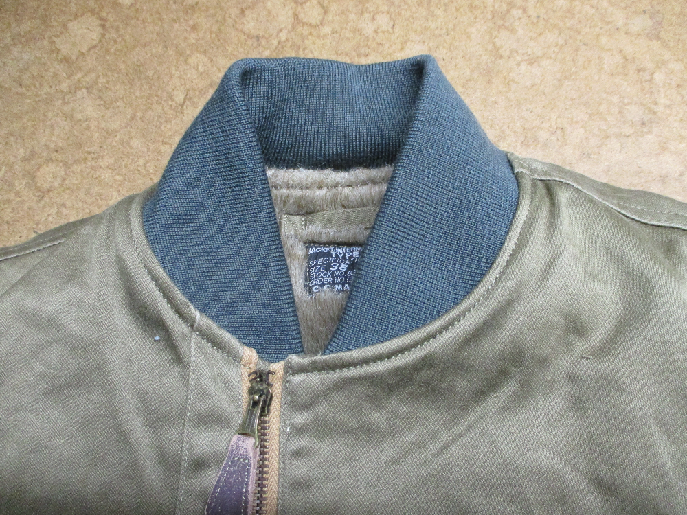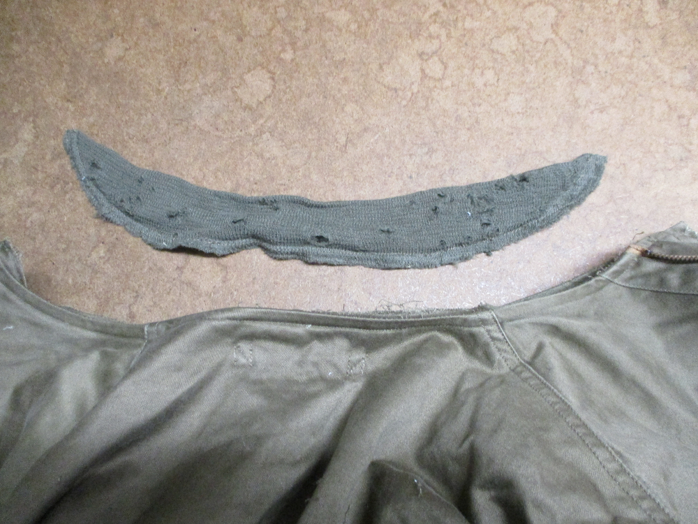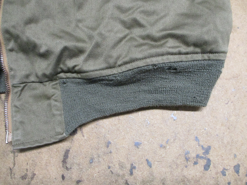 11枚目はB-15フライトジャケットの襟、両袖、腰回りのリブニットを取り外した写真です。