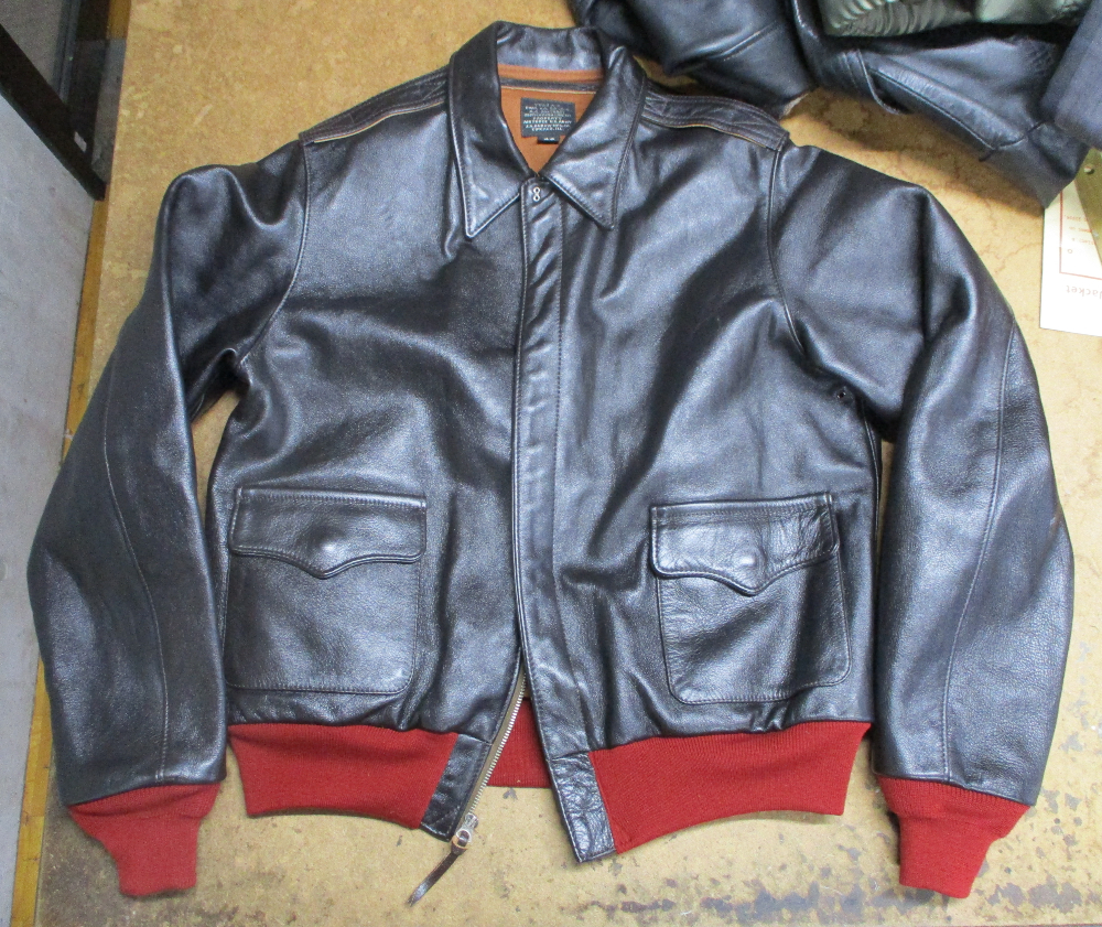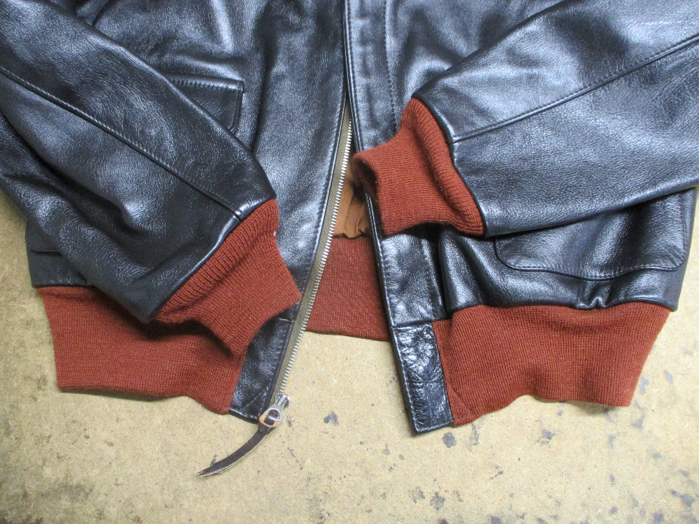 12枚目は両袖と腰回りのリブニットを新しく取り付けたA-2フライトいジャケットです。