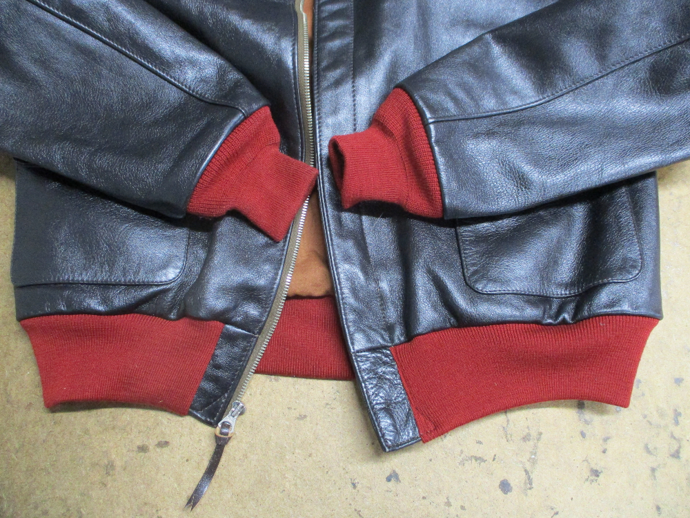 今回は来店されたお客さんでA-2フライトジャケットとこうkン用の赤リブのセットを持って来ていただきました。