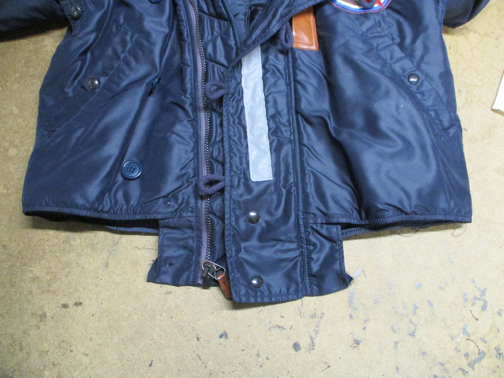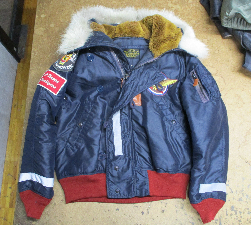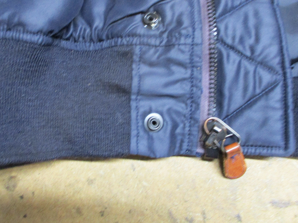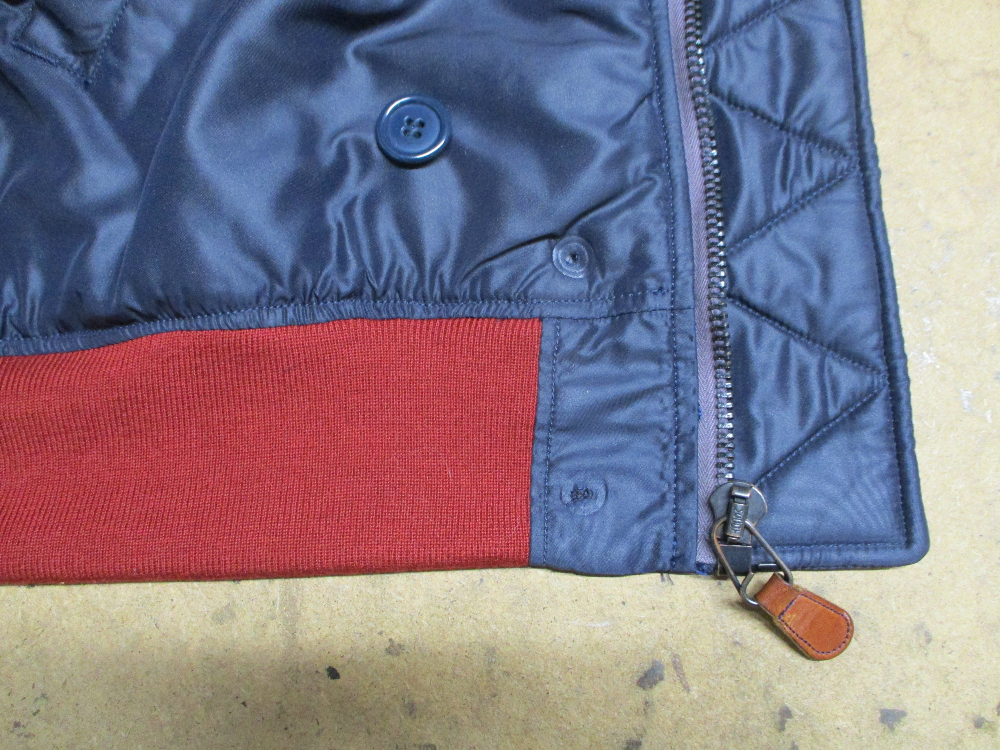 1枚目は来店されたお客さんの腰回りのリブニットを赤リブに交換していく前のN-2Bフライトジャケットです。