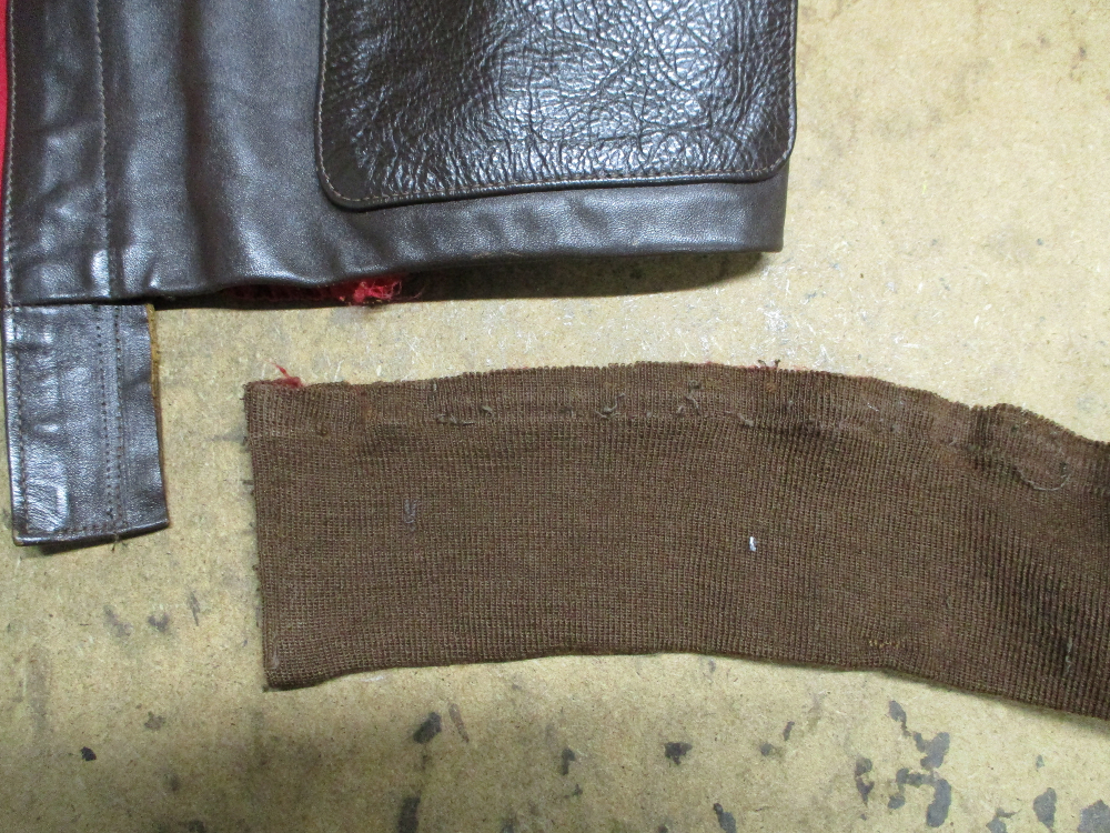 13枚目はA-2フライトジャケットの両袖、腰回りに新しく取り付けたリブニットの写真です。