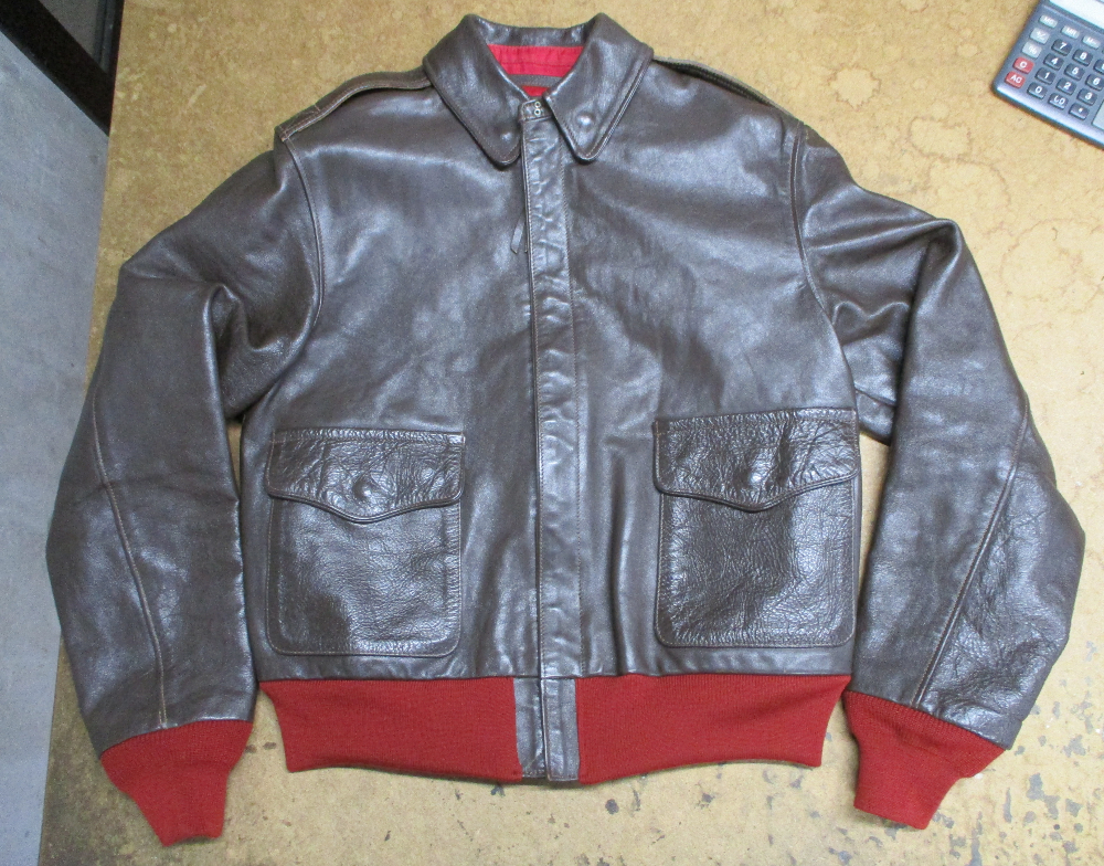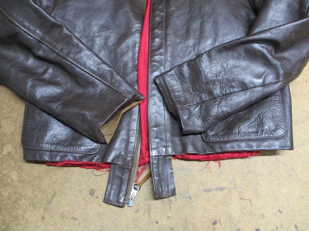 1枚目は群馬県からの郵送のお客さんの赤リブに交換していく前のA-2フライトジャケットです。