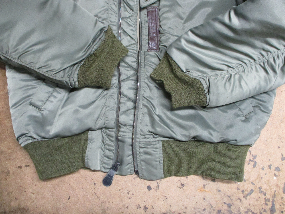 両袖と腰回りのリブニットが破れだしたB-15フライトジャケットを新しいものに交換していきます。
