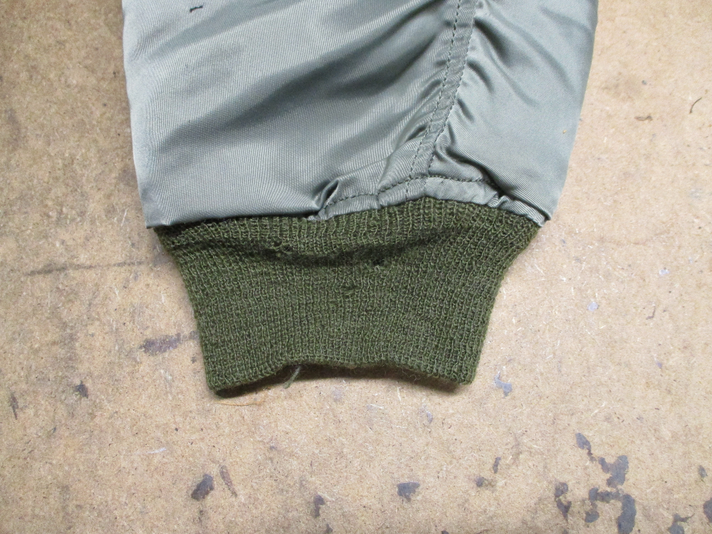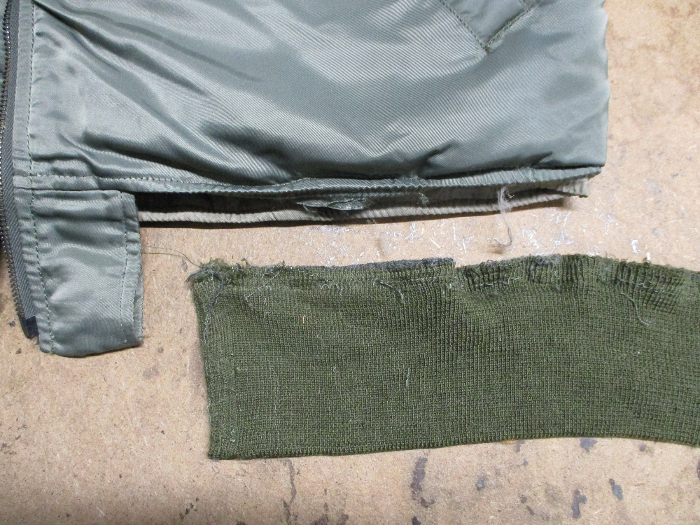 13枚目はB-15フライトジャケットの両袖、腰回りのリブニットを新しく取り付けた写真です。