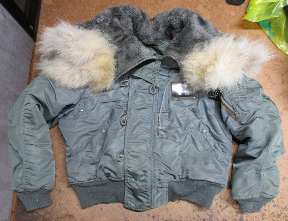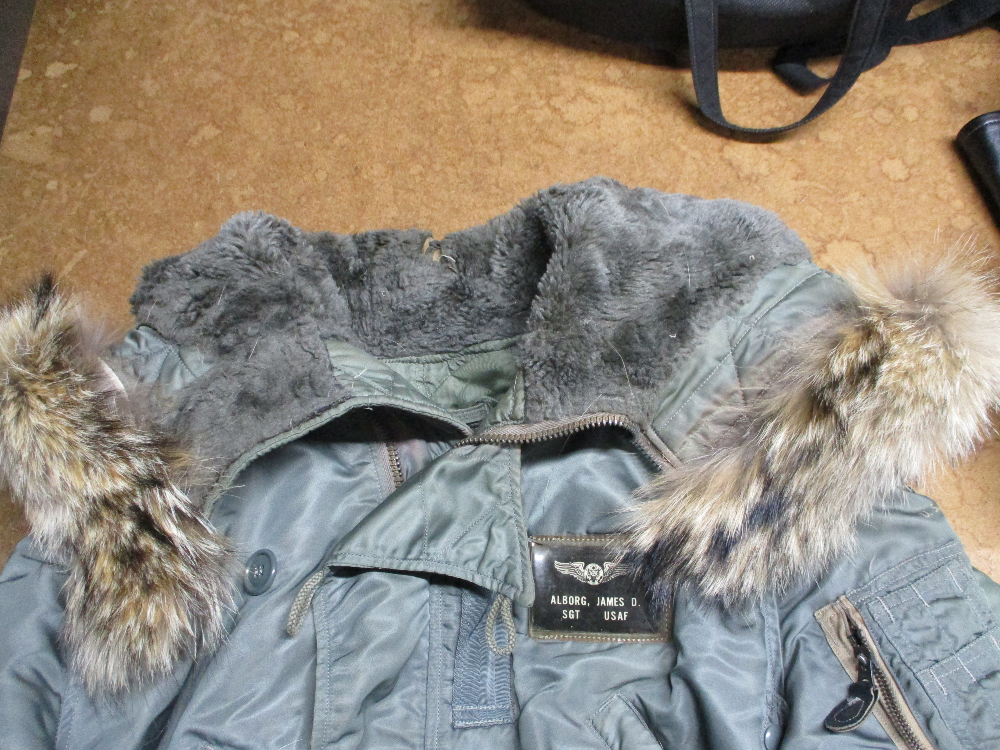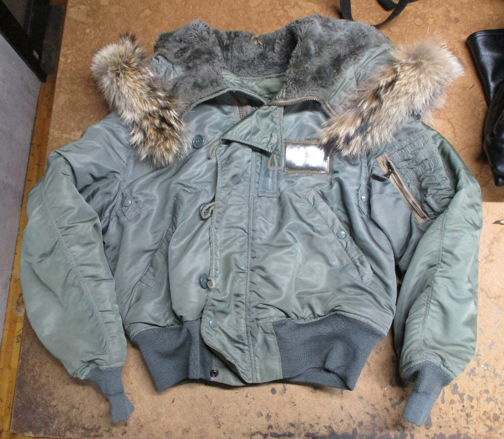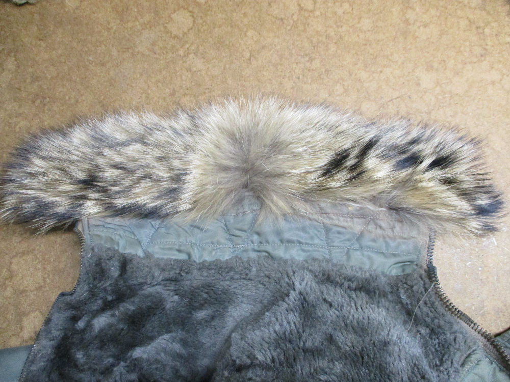 1枚目は来店されたお客さんの両袖と腰回りのリブニットと襟のファーを交換していく前のN-2Bフライトジャケットです。
