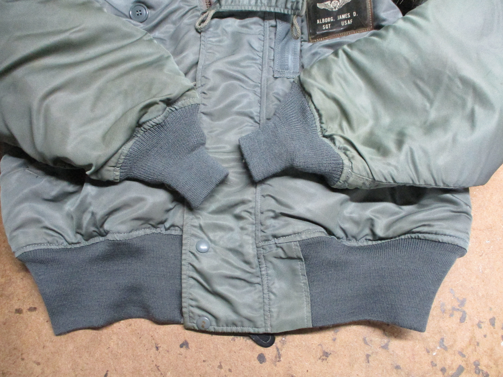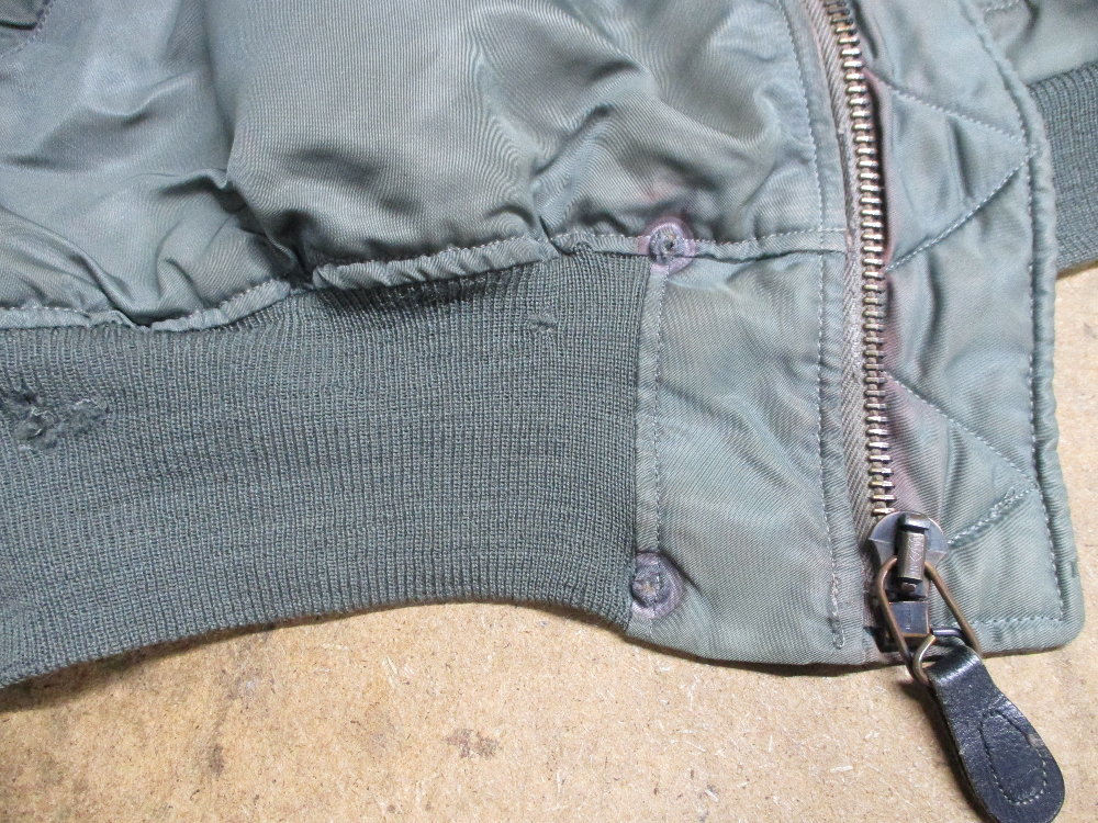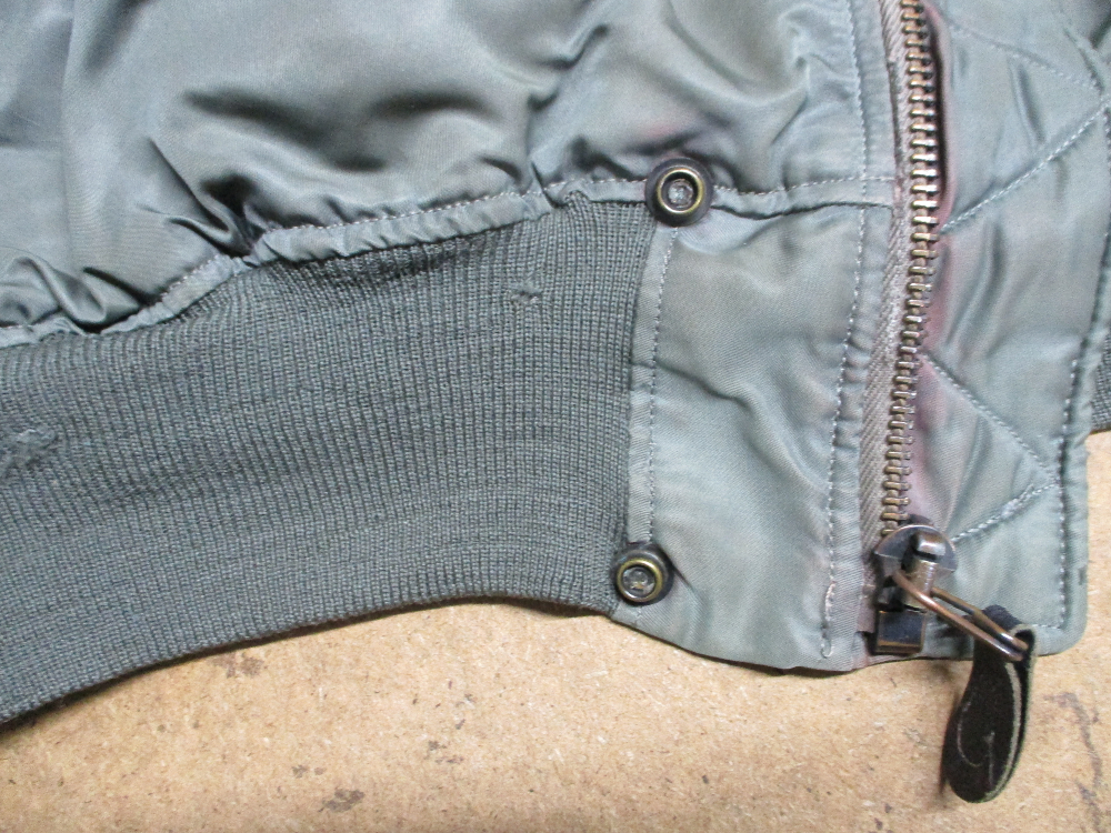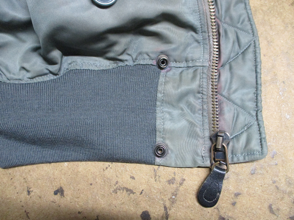 17枚目は両袖と腰回りのリブニットを新しくN-2Bフライトジャケットに取り付けた写真です。