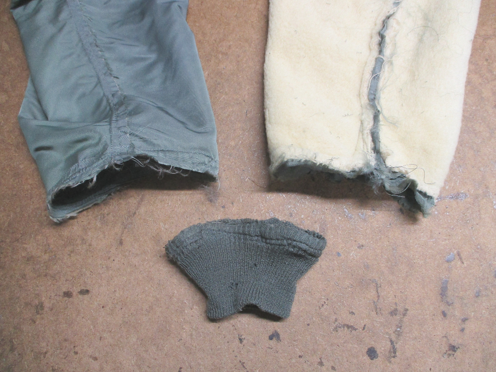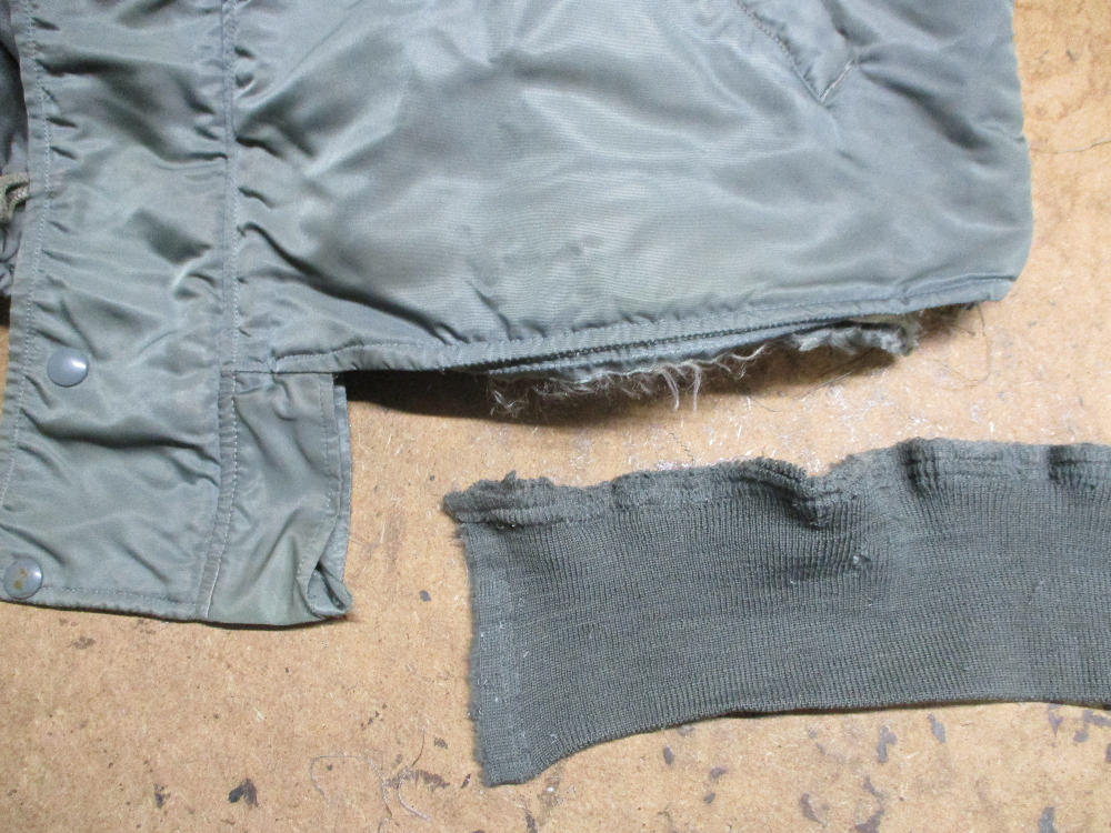 11枚目はN-2Bフライトジャケットの両袖、腰回りのリブニットを取り外した写真です。