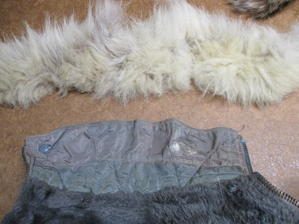 N-2Bの両袖と腰回りのリブニットと襟のファーを新しいものに交換していきます。
