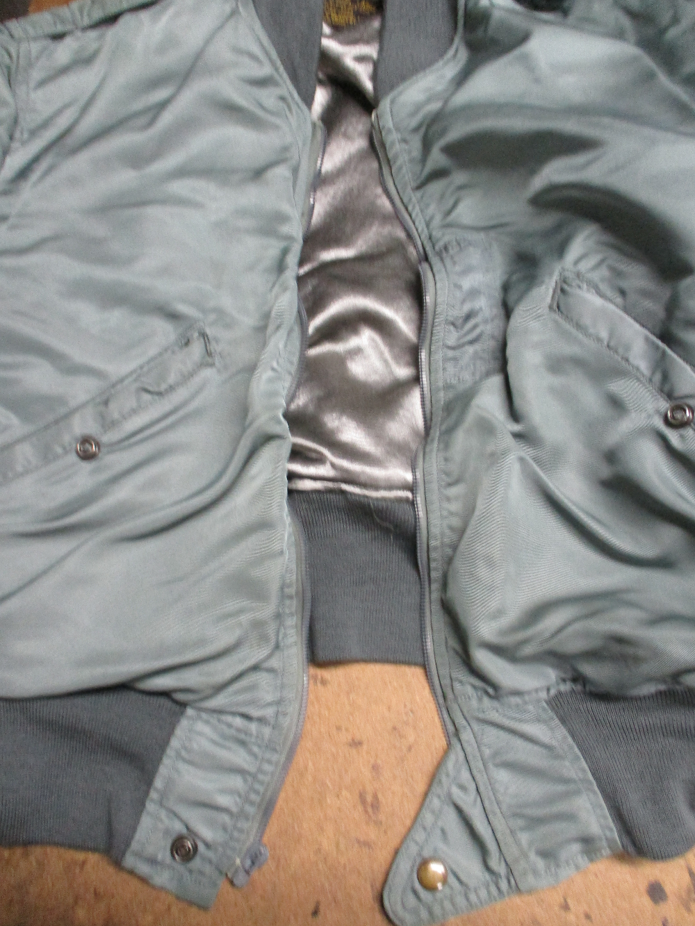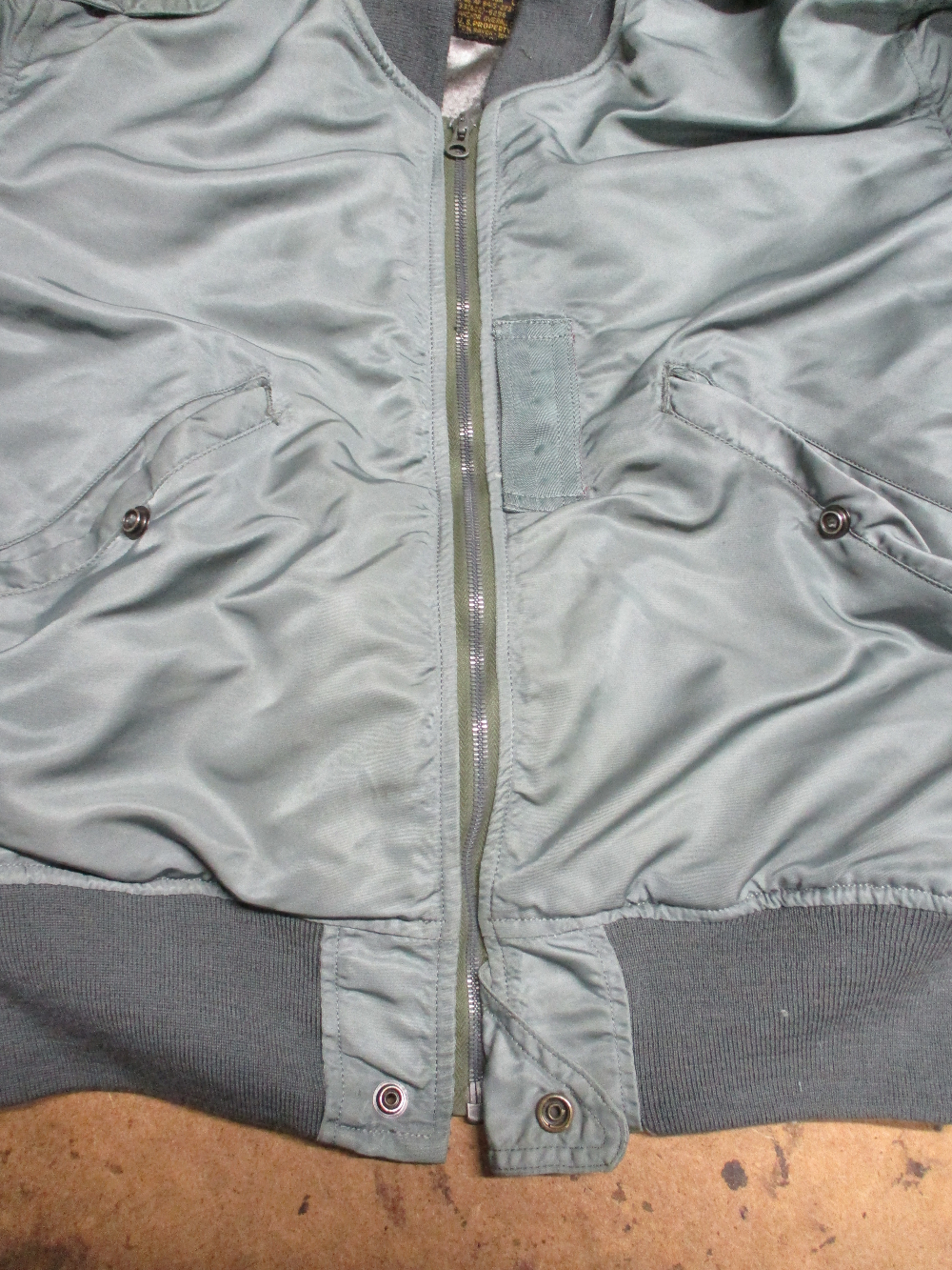 1枚目は滋賀県からの郵送のお客さんのフロントの壊れたジッパーを交換していく前のL-2Bフライトジャケットです。