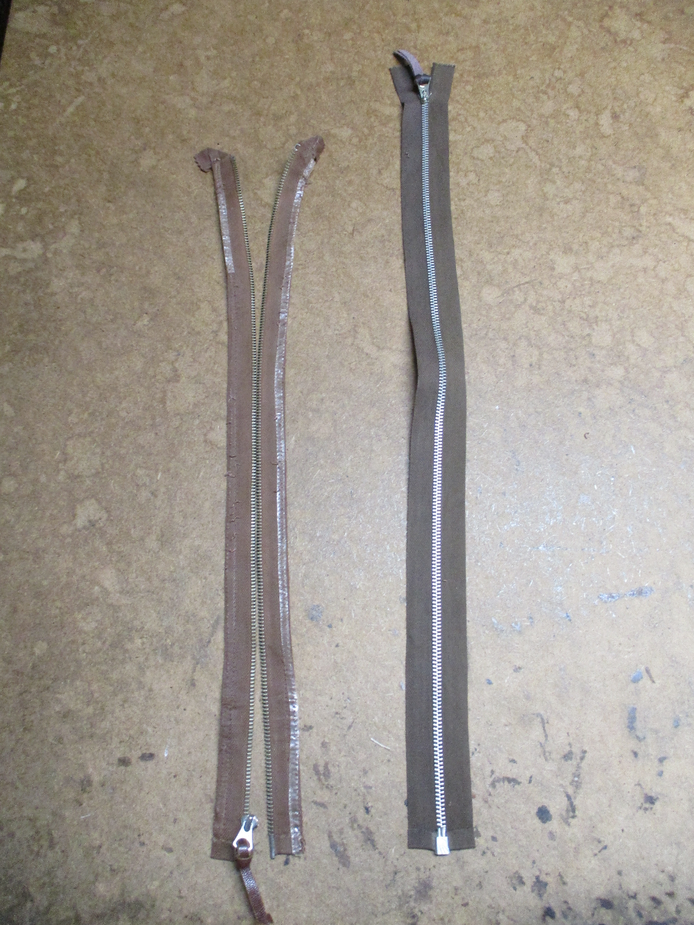 5. 壊れたライダースジャケットのジッパーを交換時にダブルジッパーに取り換え 革ジャン…