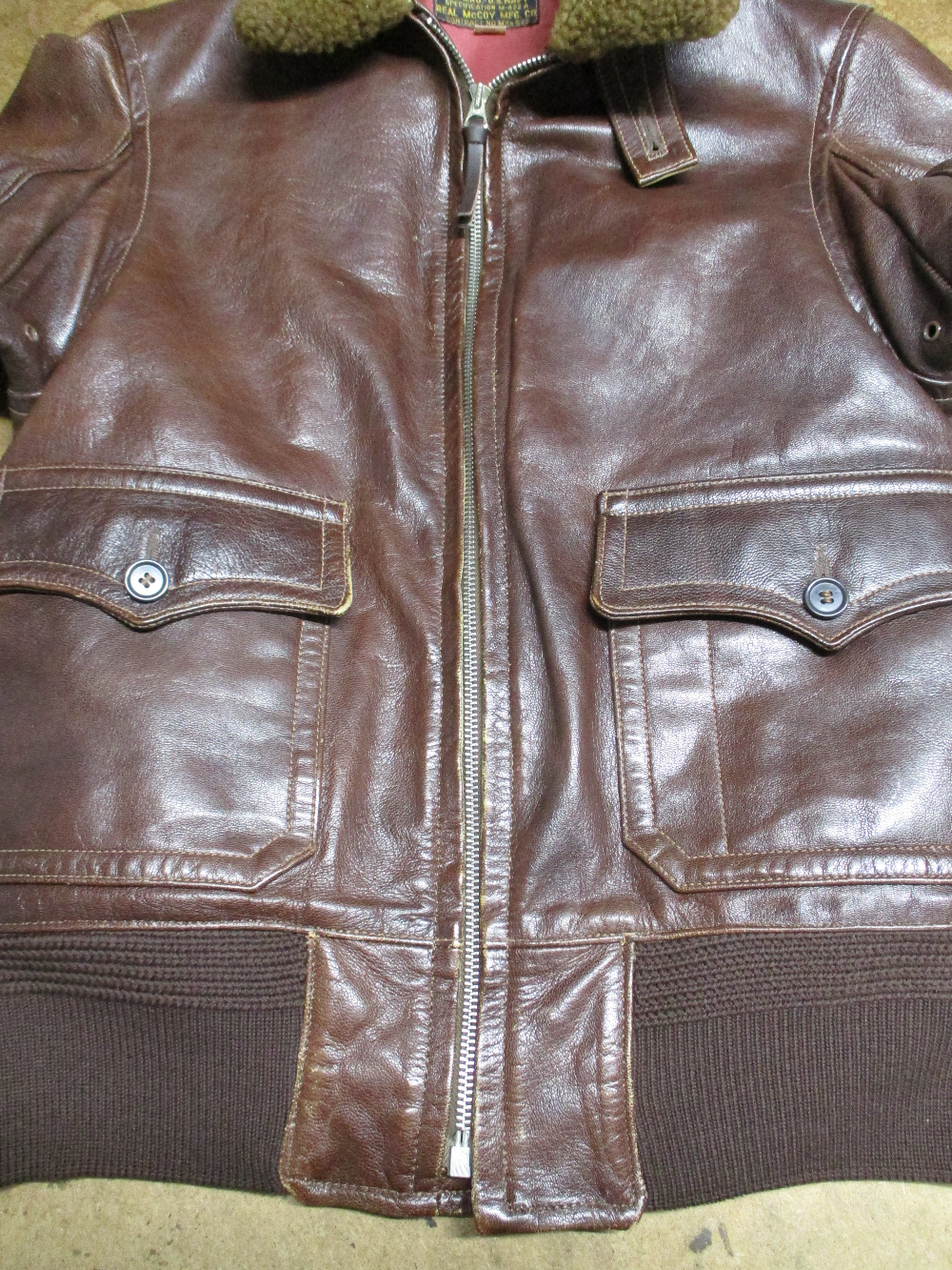 1枚目は来店されたお客さんのリブニットとファスナーを新しいものに交換していく前のM-442フライトジャケットです。