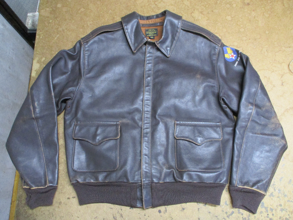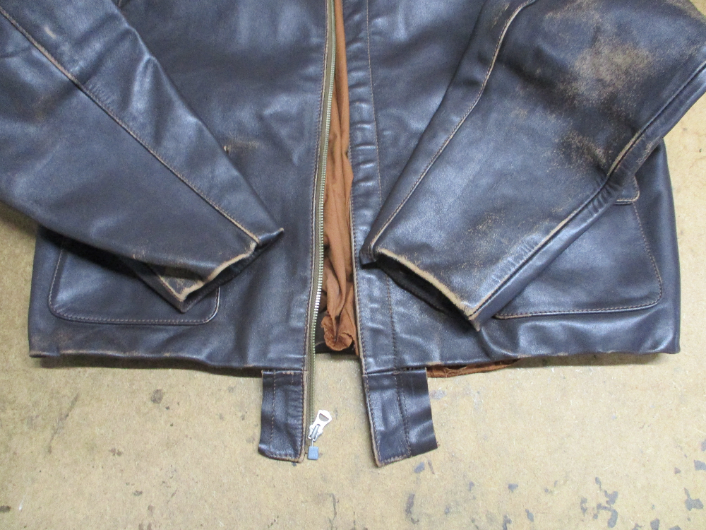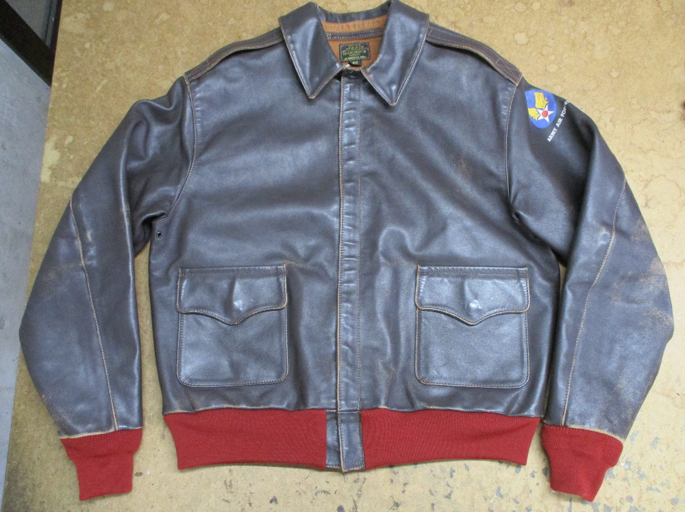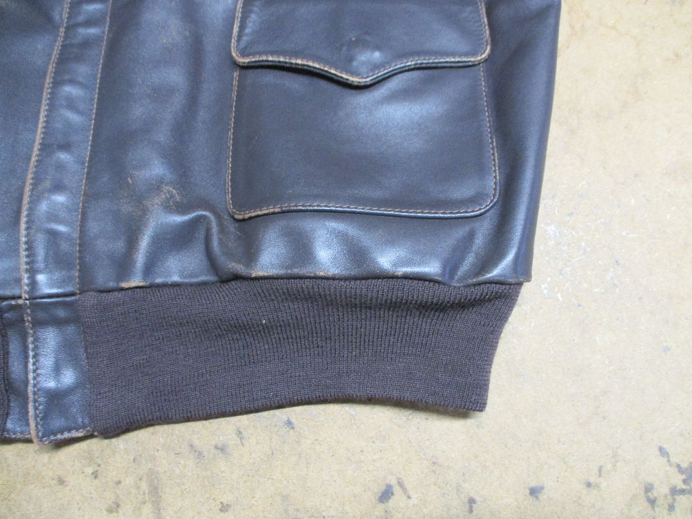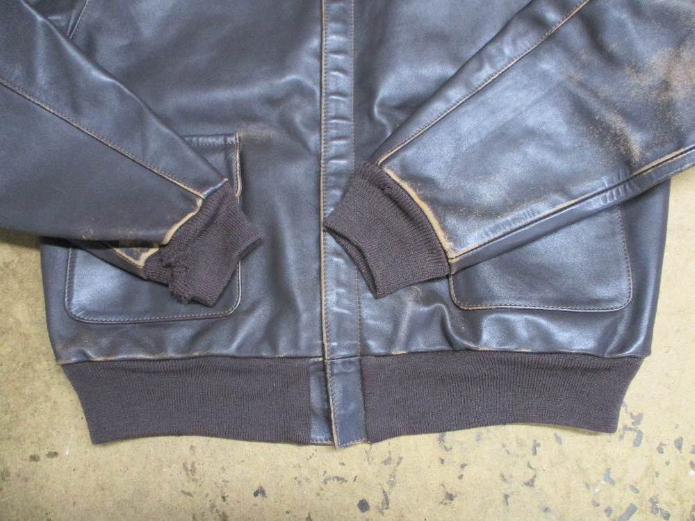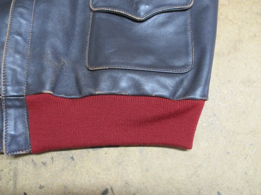 1枚目は来店されたお客さんの新しく赤リブに交換していく前のA-2フライトジャケットです。