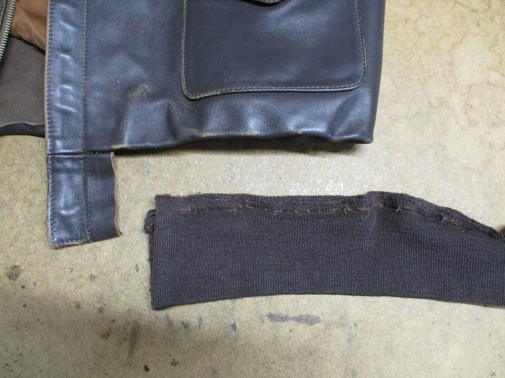 今回は来店されたお客さんで両袖と腰回りのリブニットを持って来ていただいてA-2フライトジャケットに取り付けたいとのことでした。