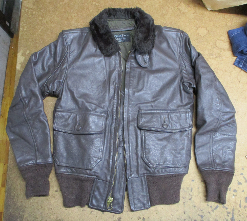 1枚目は来店されたお客さんの両袖と腰回りを交換していく前のG-1フライトジャケットです。