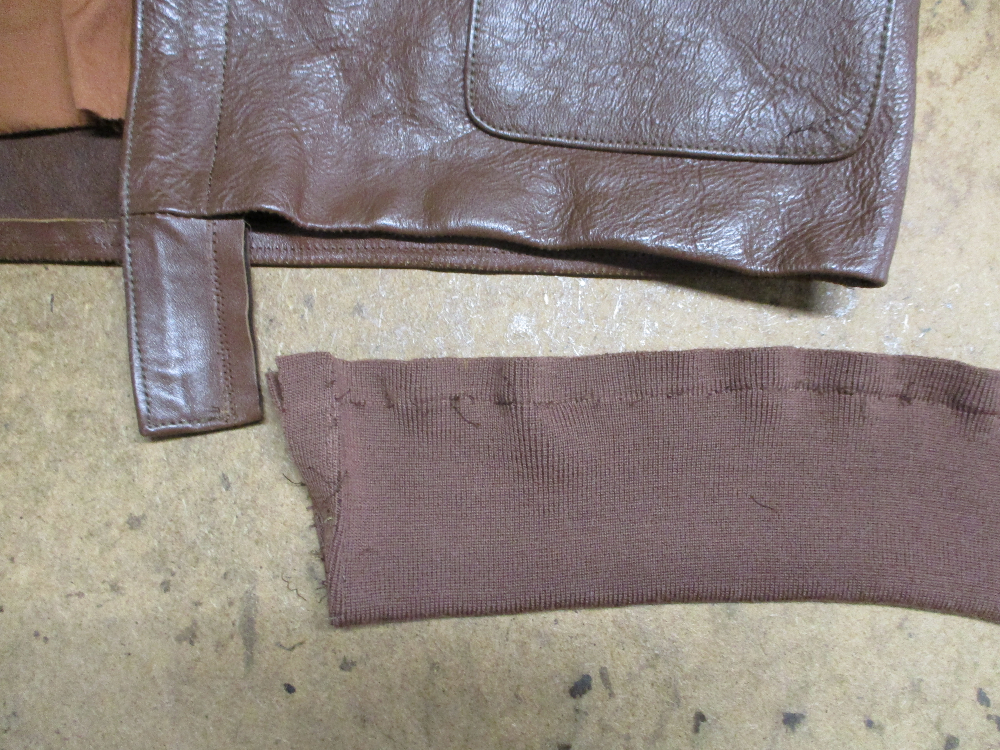 A-2フライトジャケットのリブニットの新しいものに交換と袖丈を短くしていきます。