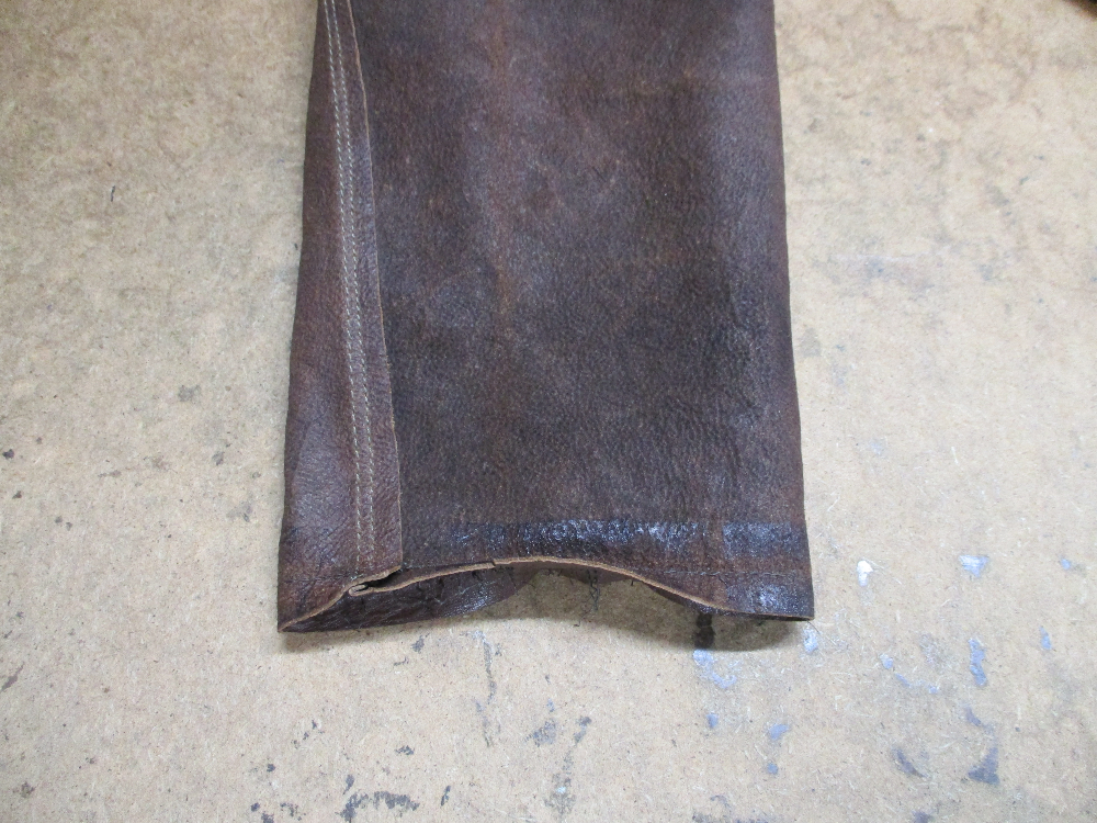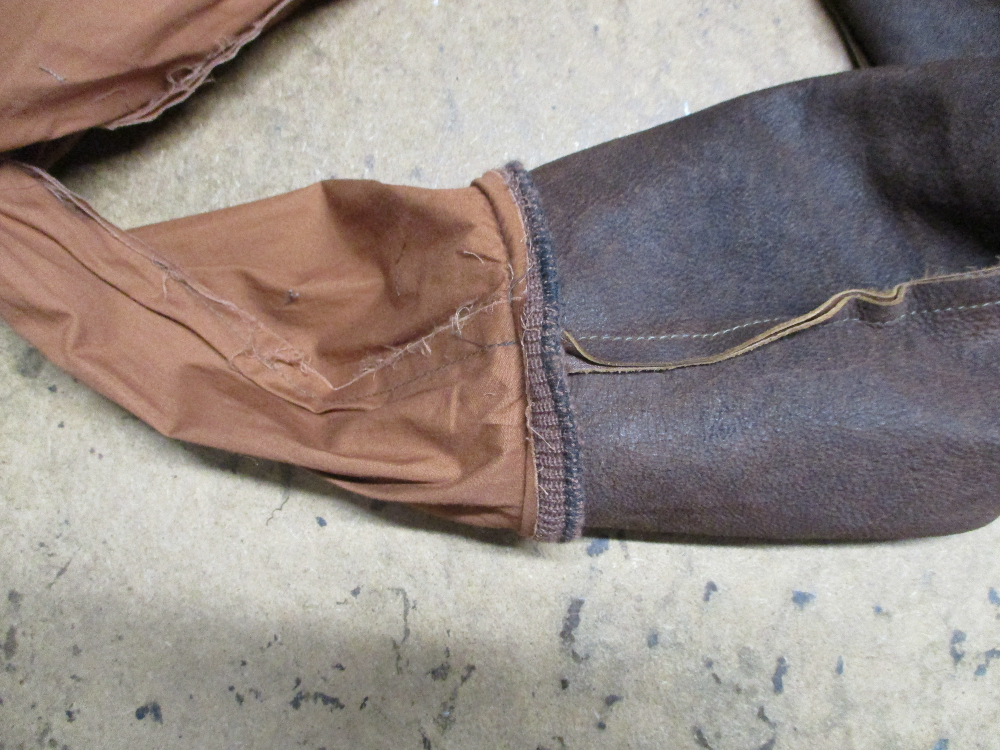 1枚目は福島県からの郵送のお客さんの両袖と腰回りのリブニットの交換と袖丈を短くしていく前の-2フライトジャケットです。