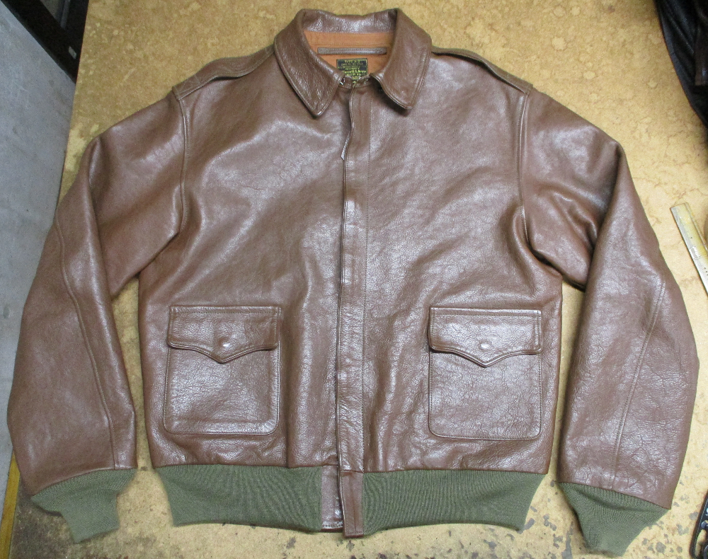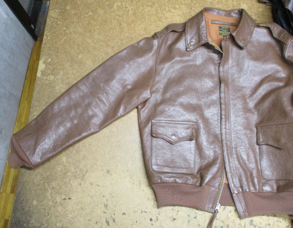 16枚目は17枚目との比較で袖丈を短くしていく前のA-2フライトジャケットです。