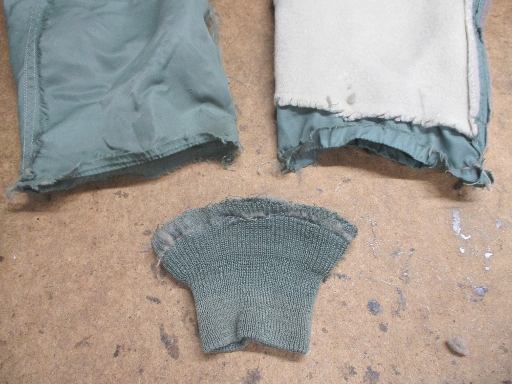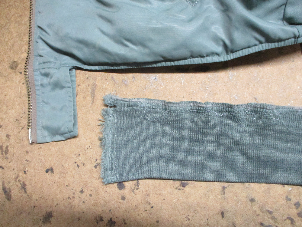 11枚目はB-15フライトジャケットから襟、両袖、腰回りのリブニットを取り外した写真です。