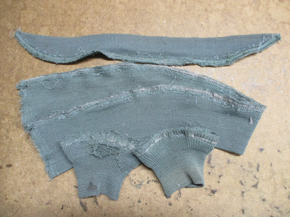 2枚目は荷物の中に入っていた交換用の新しい襟、両袖、腰回りのリブニットの写真です。