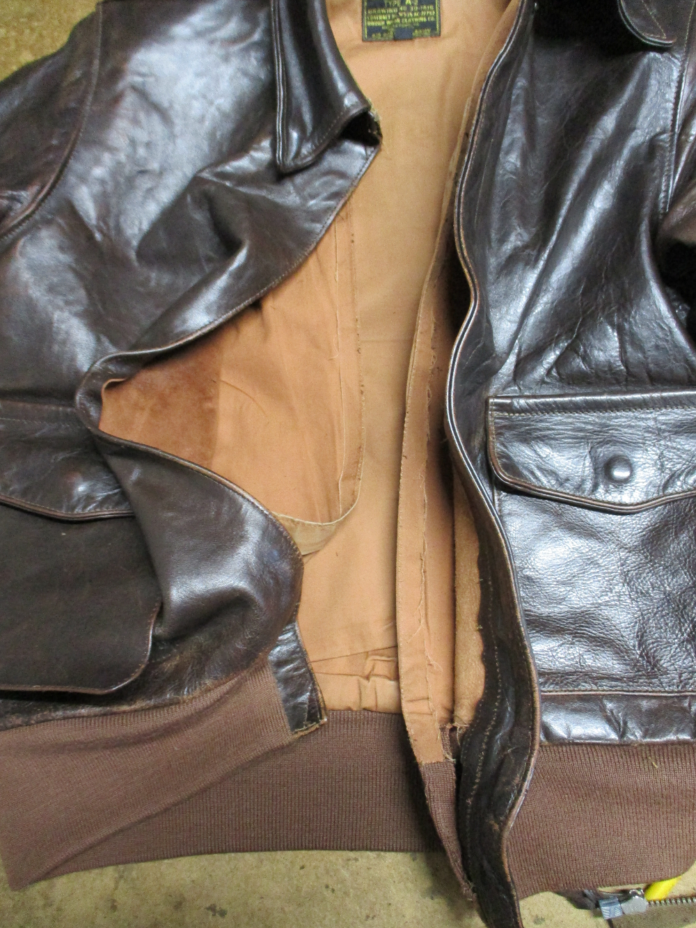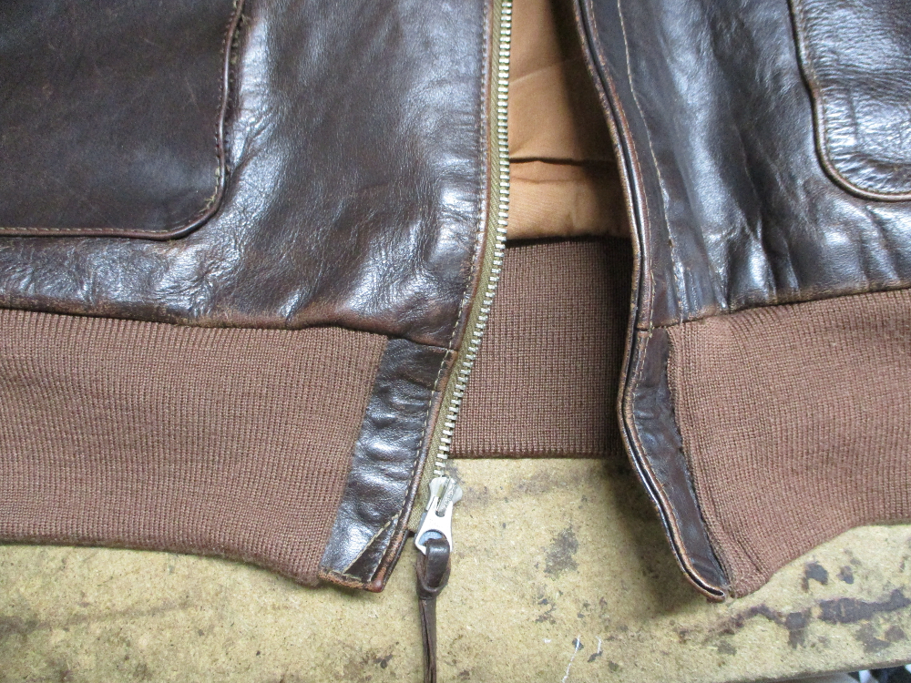 1枚目は奈良県からの郵送のお客さんの右側のポケットと新しいタロンジッパーに交換していく前のA-2フライトジャケットです。