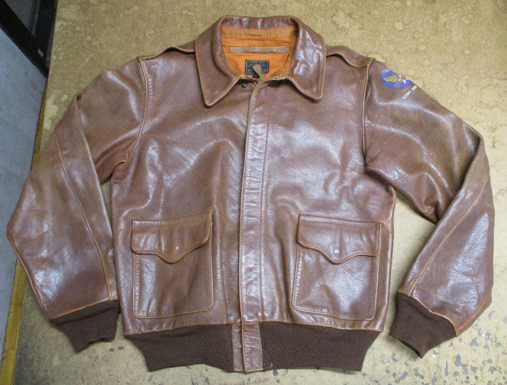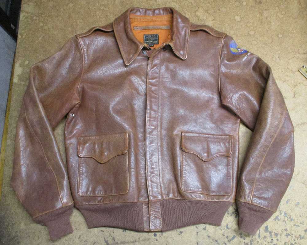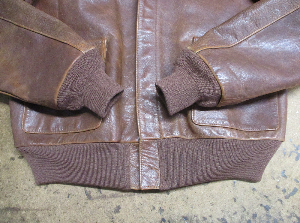 1枚目は長崎県からの郵送のお客さんの両袖と腰回りのリブニットを交換していく前のA-2フライトジャケットです。
