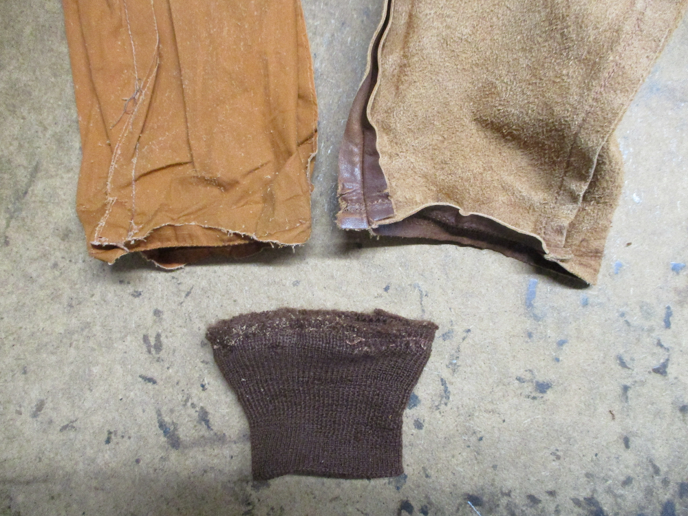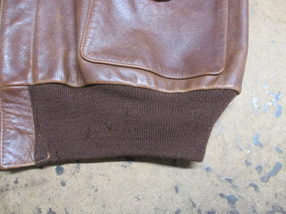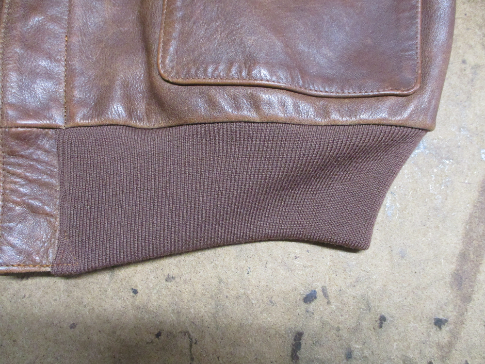 A-2フライトジャケットの両袖と腰回りのリブニットを新しいものに交換していきます。