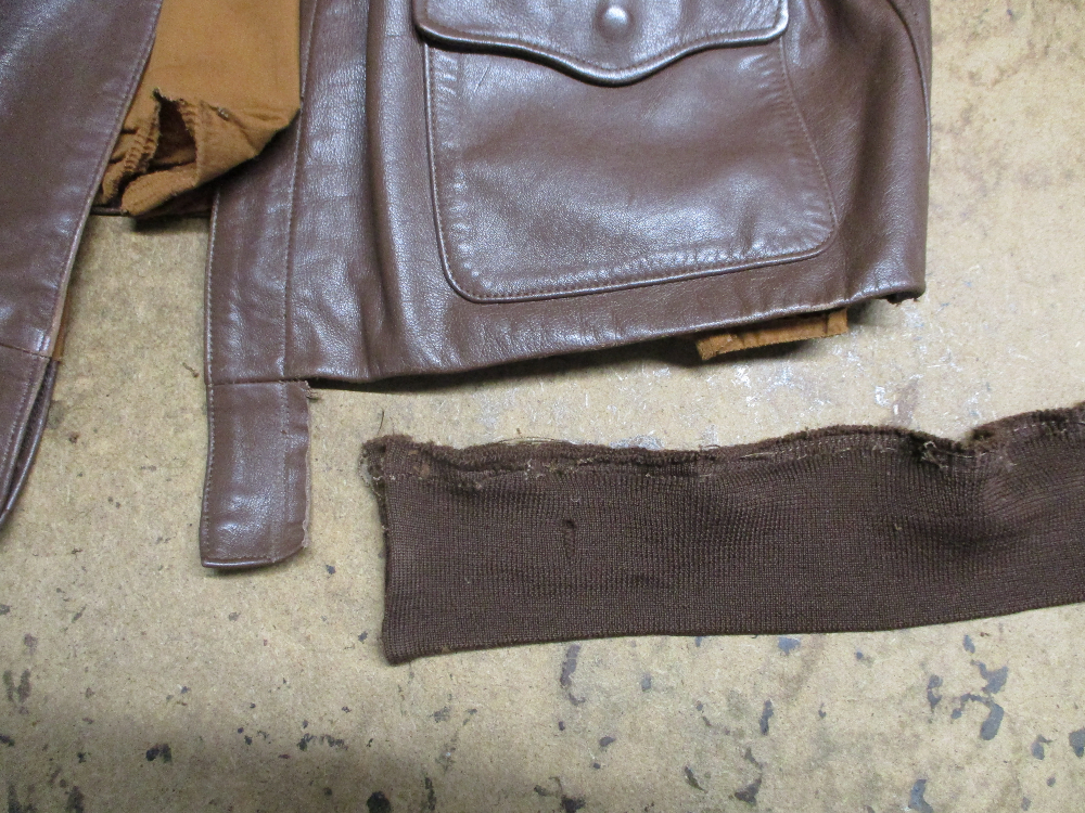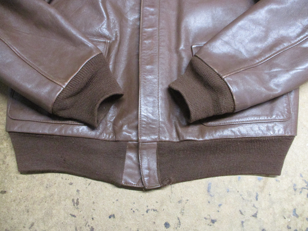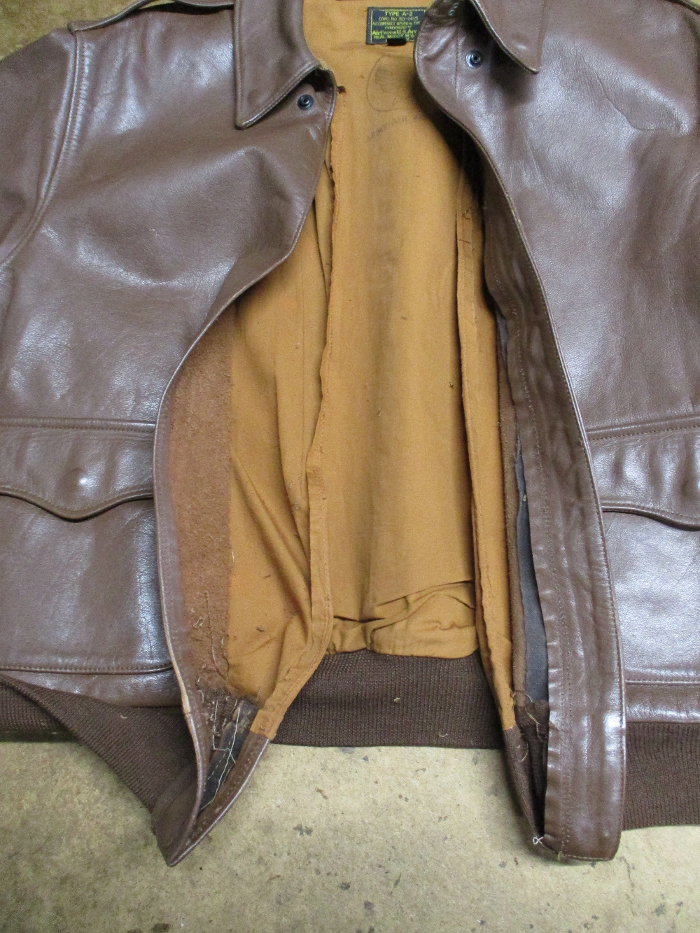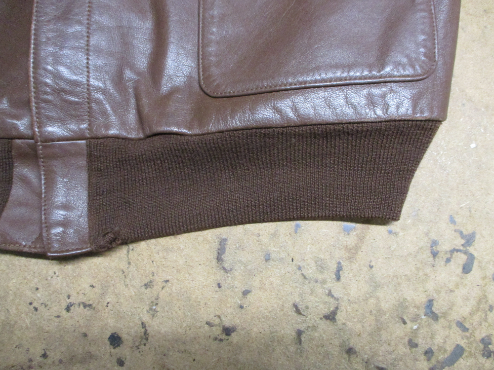 21枚目はA-2フライトジャケットに新しく両袖、腰回りのリブニットを取り付けた写真です。