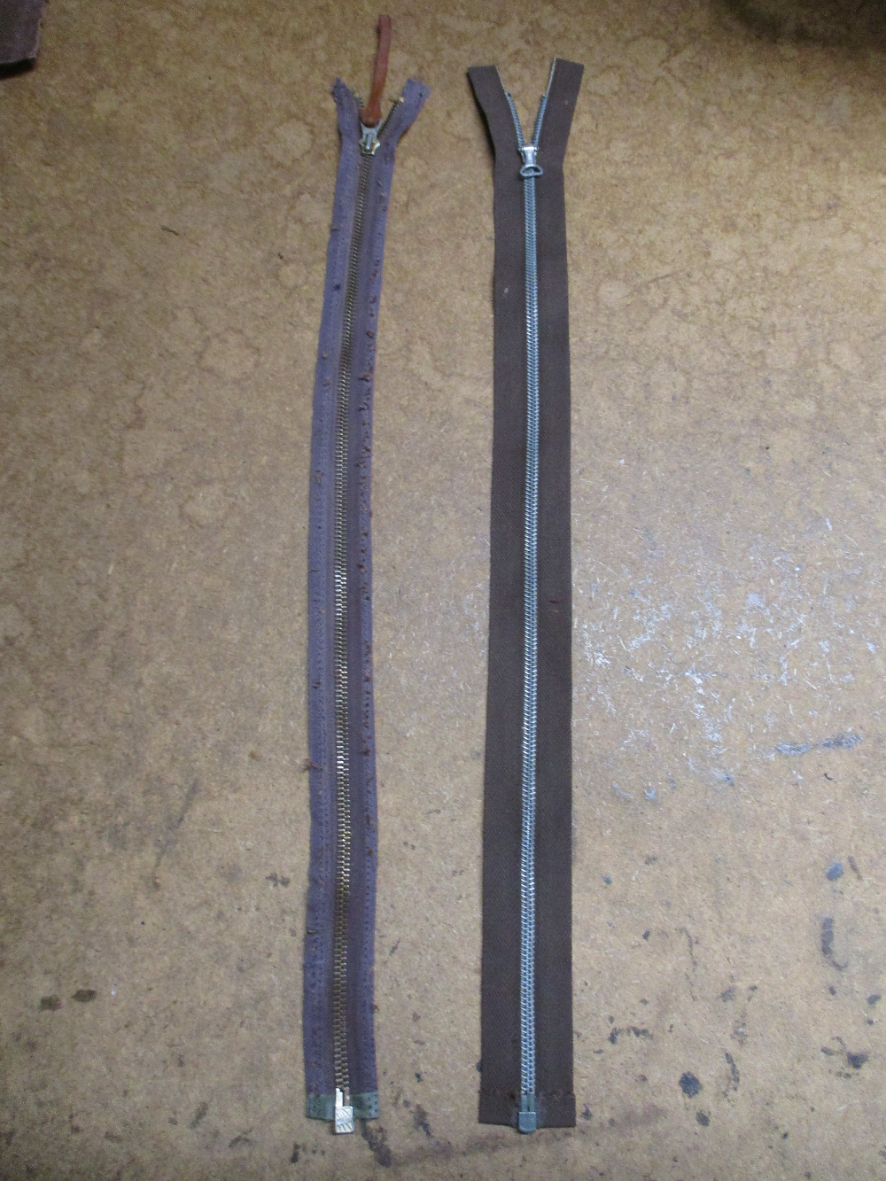 15枚目は取り外したジッパーとクラウンのビンテージジッパーの長さが違いますので同じ長さに合わせていきます。