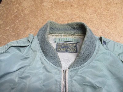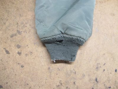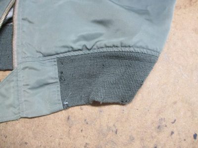 1枚目は来店されたお客さんの襟、両袖、腰回りのリブニットを新しいものに交換していくL-2Bフライトジャケットです。