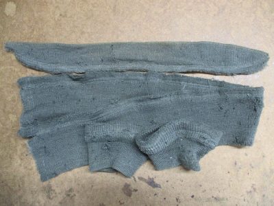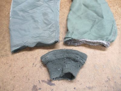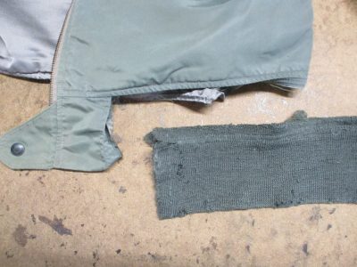 12枚目はL-2Bフライトジャケットから襟、両袖、腰回りのリブニットを取り外した写真です。