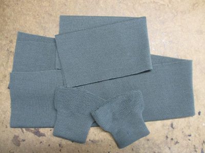 L-2Bフライトジャケットの襟、両袖、腰回りのリブニットを新しく交換していきます。