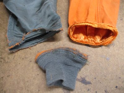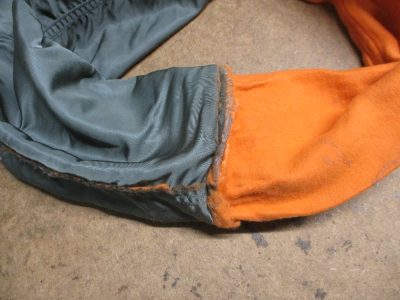 所々破れだしたL-2Bフライトジャケットのリブニットを新しいものに交換…