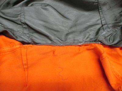 1枚目は北海道からの郵送のお客さんで襟、両袖、腰回りのリブニットとフロントファスナーを新しく交換していくL-2Bフライトジャケットです。
