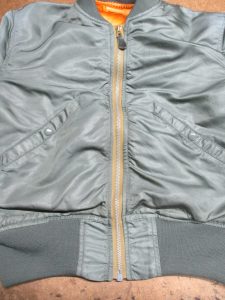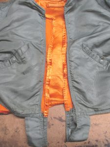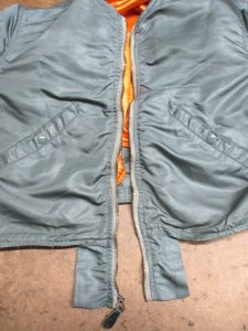 A-2フライトジャケットの破れたポケットを直すのと新しいタロンジッパー…