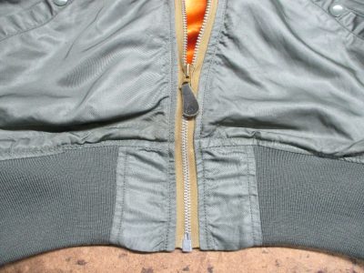 4枚目は元々L-2Bフライトジャケットに付いてる襟、両袖、腰回りのリブニットとフロントファスナーの写真です。