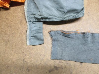 12枚目はL-2Bフライトジャケットから襟、両袖、腰回りのリブニットを取り外した写真です。