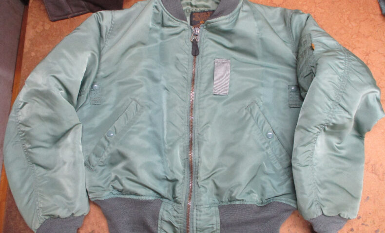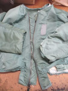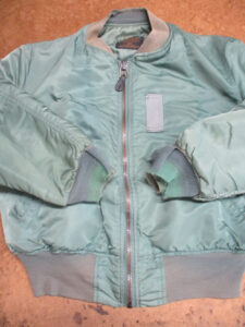 1枚目は来店されたお客さんの襟、両袖、腰回りのリブニットを新しく交換していく前のMA-1フライトジャケットです。