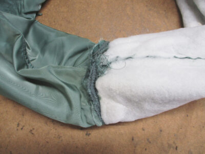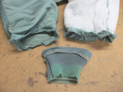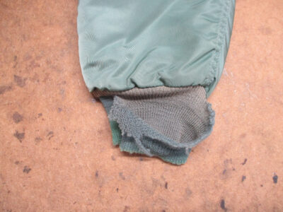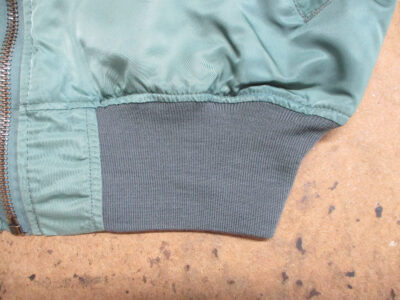 MA-1フライトジャケットの襟、両袖、腰回りのリブニットを新しく交換していきます。