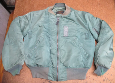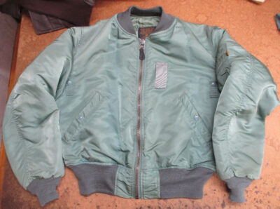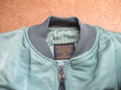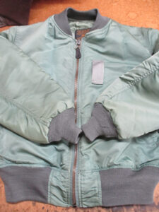 16枚目はMA-1フライトジャケットに襟、両袖、腰回りのリブニットを取り付けた写真です。