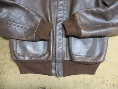 A-2フライトジャケットの両袖と腰回りのリブニットを新しく交換していきます。