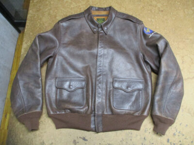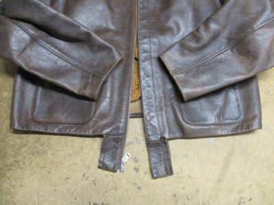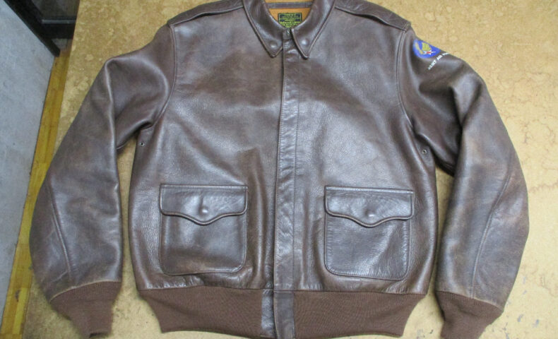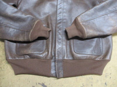 1枚目は来店されたお客さんで作業終了後に和歌山県に荷物を送る両袖と腰回りのリブニットを新しく交換していくA-2フライトジャケットです。