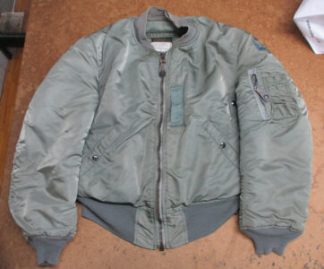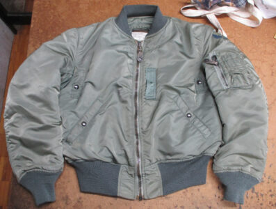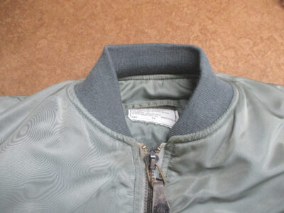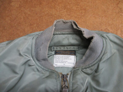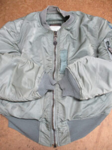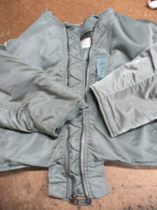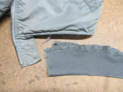 1枚目は和歌山県からの郵送のお客さんの襟、両袖、腰回りのリブニットを新しく交換していく前のMA-1フライトジャケットです。